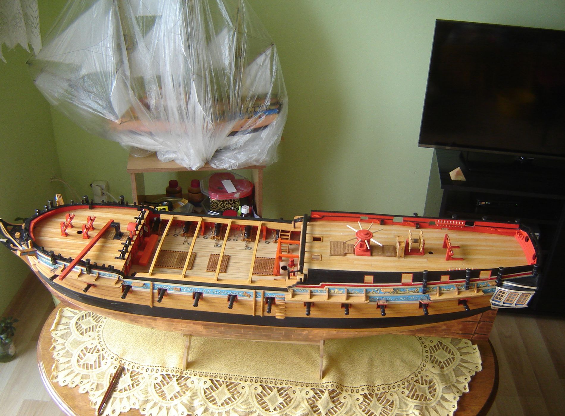 Prace przy koszu dziobowym powoli dobiegają końca. Zamontowałem kibelki na koszu oraz kotbelki i pozostałe wsporniki. Następne będzie wyposażenie pokładu dziobowego.