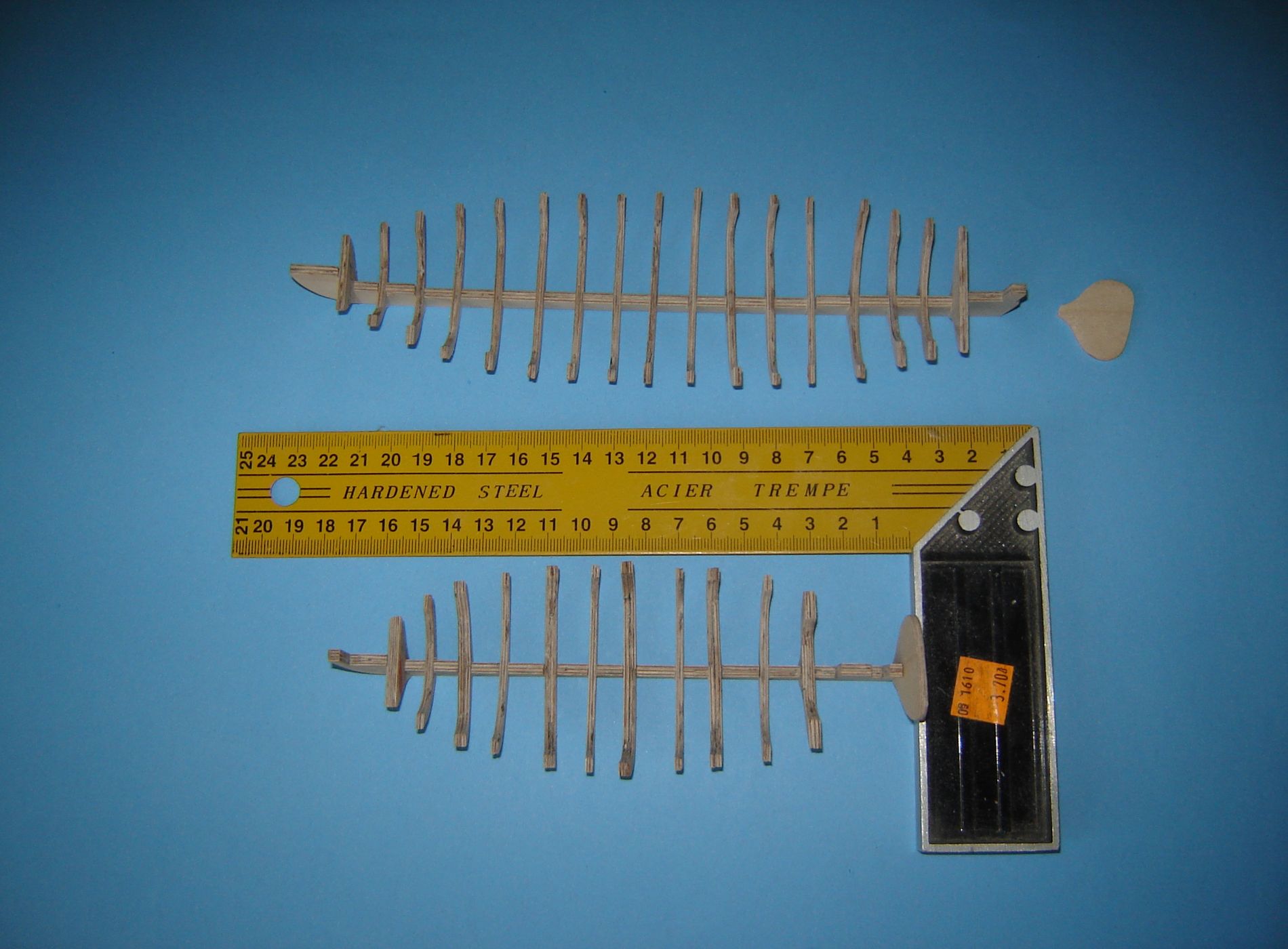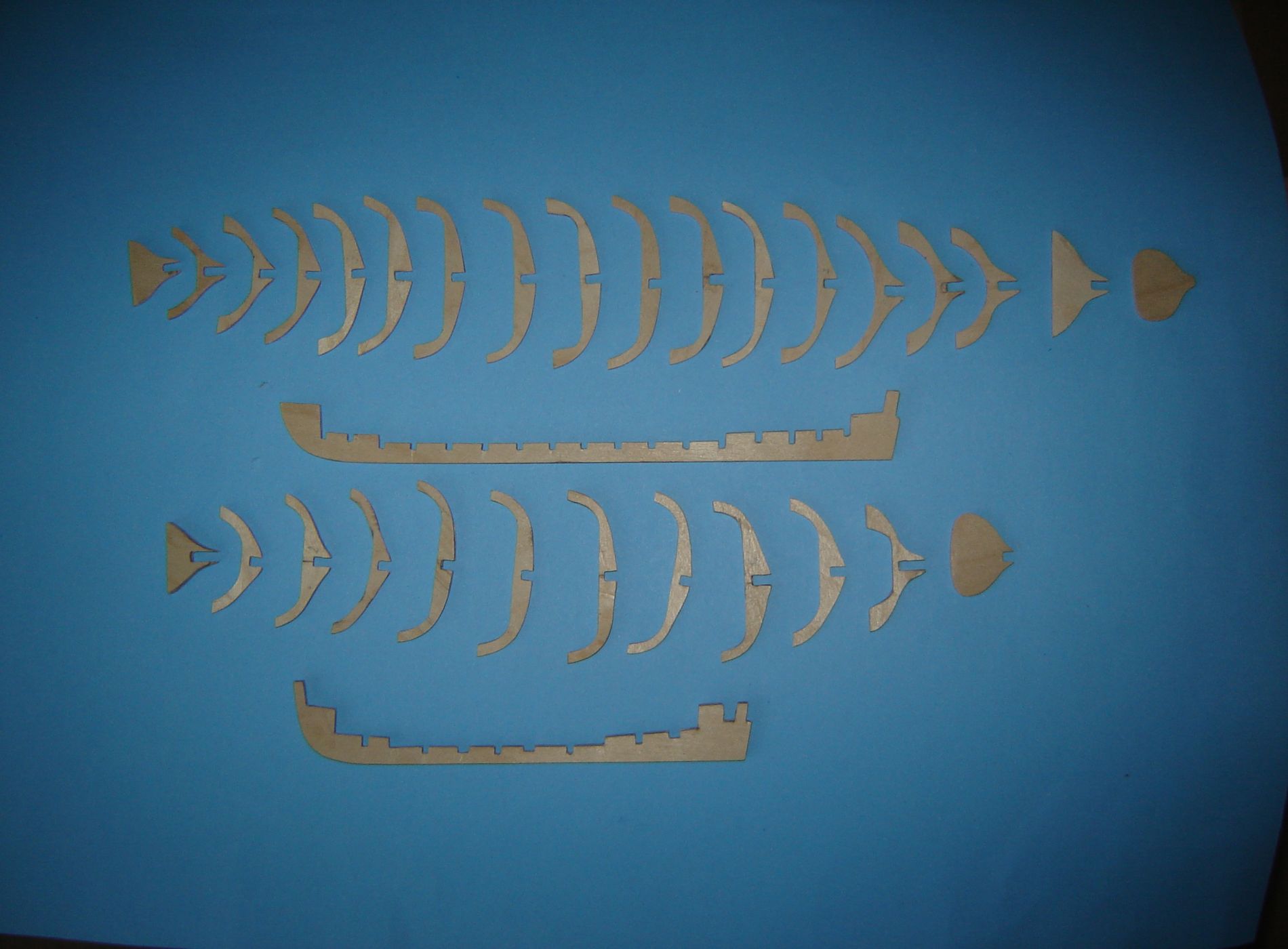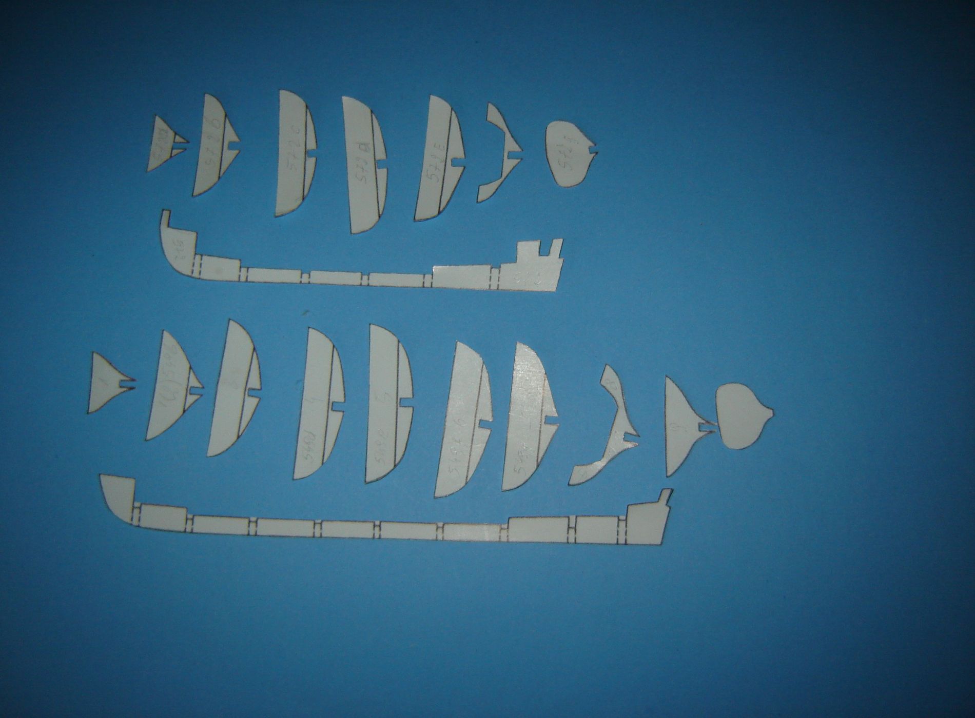 Tak to wygląda według wycinanki. Mniejsza szalupa ma 6 wręg a większa 9. Prawie wszystkie wręgi są pełne.