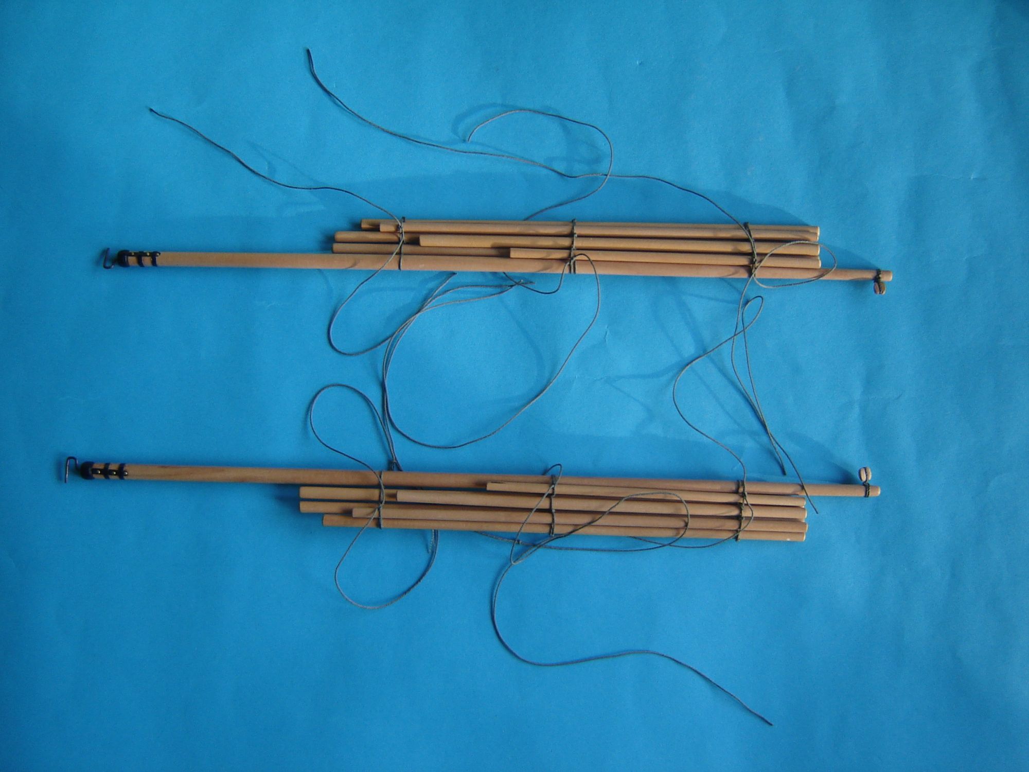 Wszystkie 30 wioseł na gotowo. Do dwóch największych szalup wiosła mają długość 19 cm. Do szalupy średniej 6 wioseł 17 cm i do najmniejszego bączka 4 wiosła 15 cm długości.
