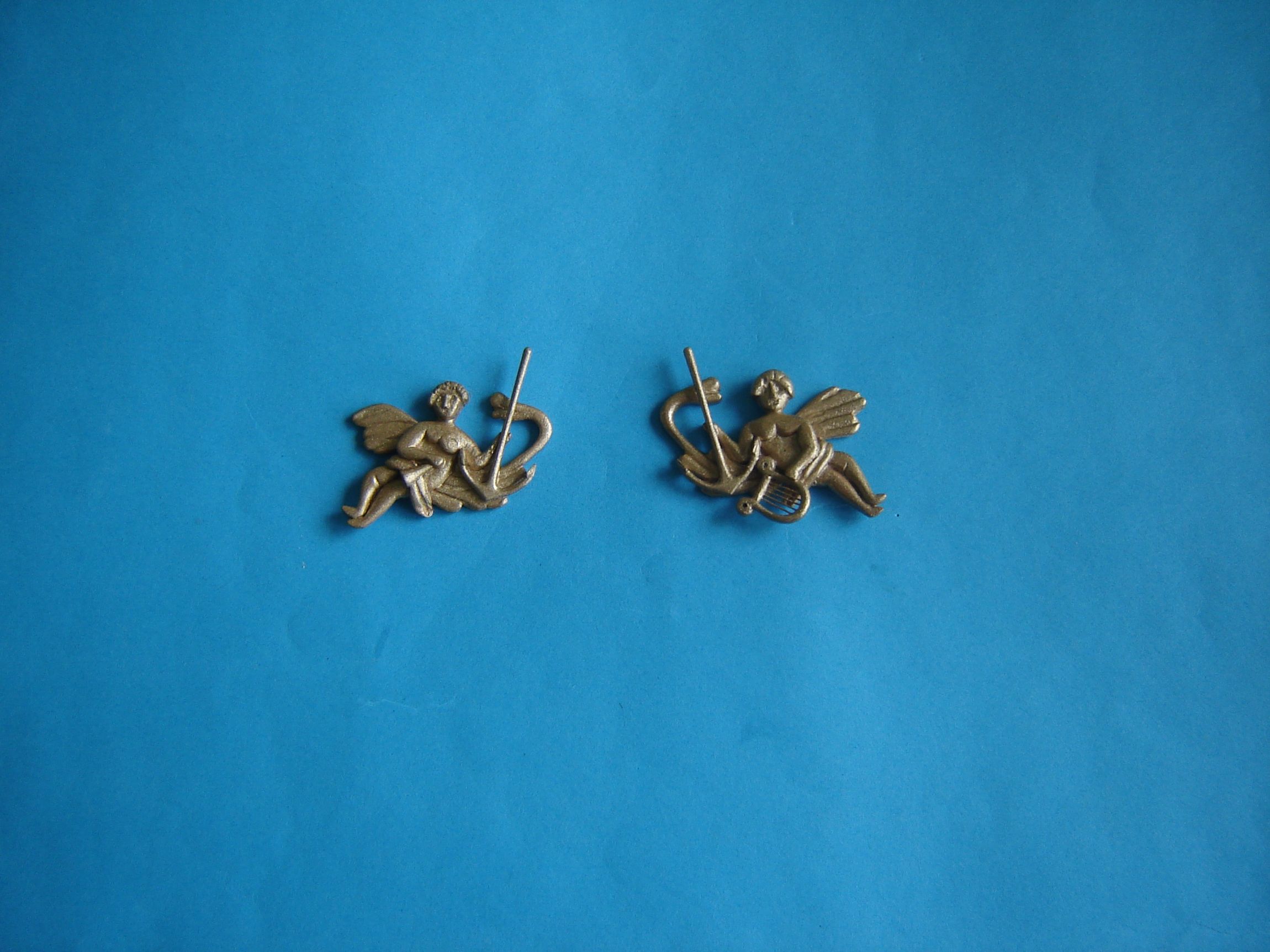 Obydwa amorki pomalowane złotolem. Jeden ma "fujarkę" a drugi "gitarę", a więc cała orkiestra amorkowa w komplecie.