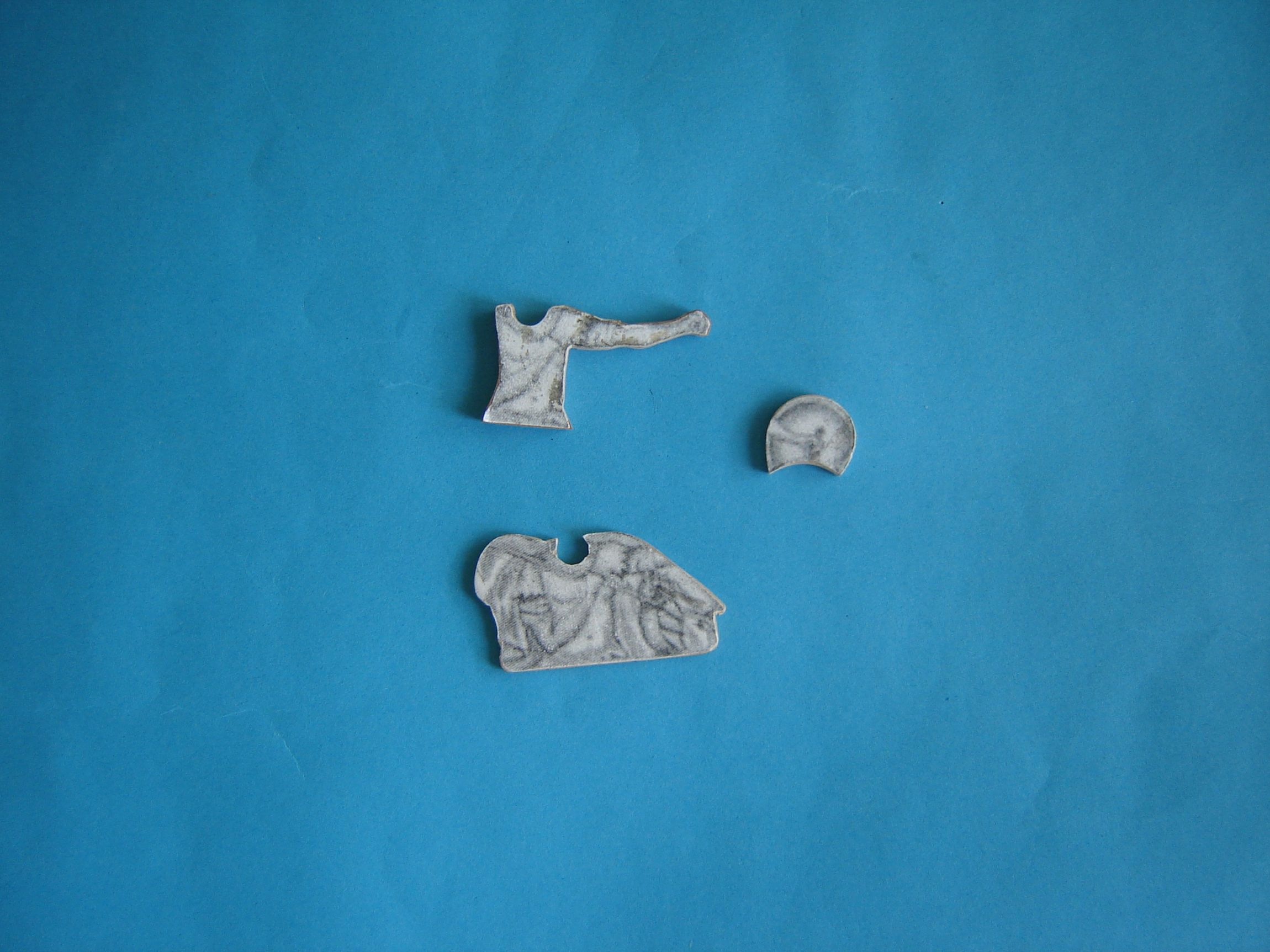 Wyciąłem i wyszlifowałem pozostałe elementy ubioru i uzbrojenia oraz elemenciki z których zamierzałem skleić sowę. Wszak Atena to nie tylko bogini wojny ale także bogini mądrości, a symbolem mądrości jest sowa. To pewna ironia gdyż na tle innych drapieżników sowa jest wyjątkowo głupim ptakiem, ale starożytni Grecy nie musieli o tym wiedzieć. To tak na marginesie.