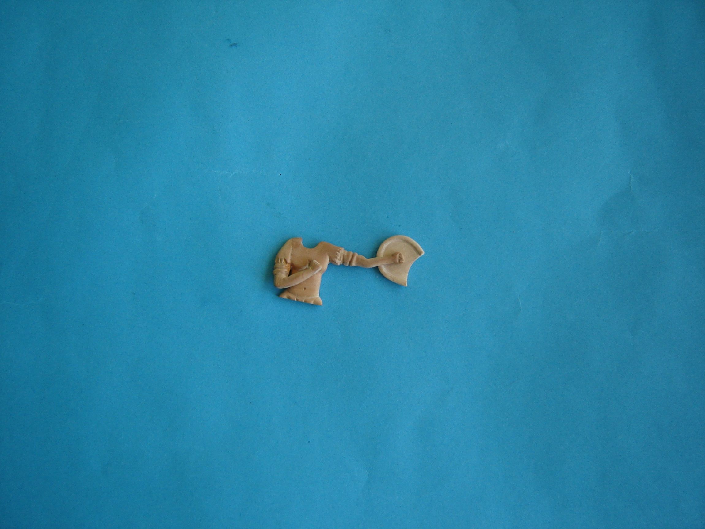 Po wyszlifowaniu prawej reki przykleiłem ją do tułowia Ateny. Wydziobałem też tarczę.