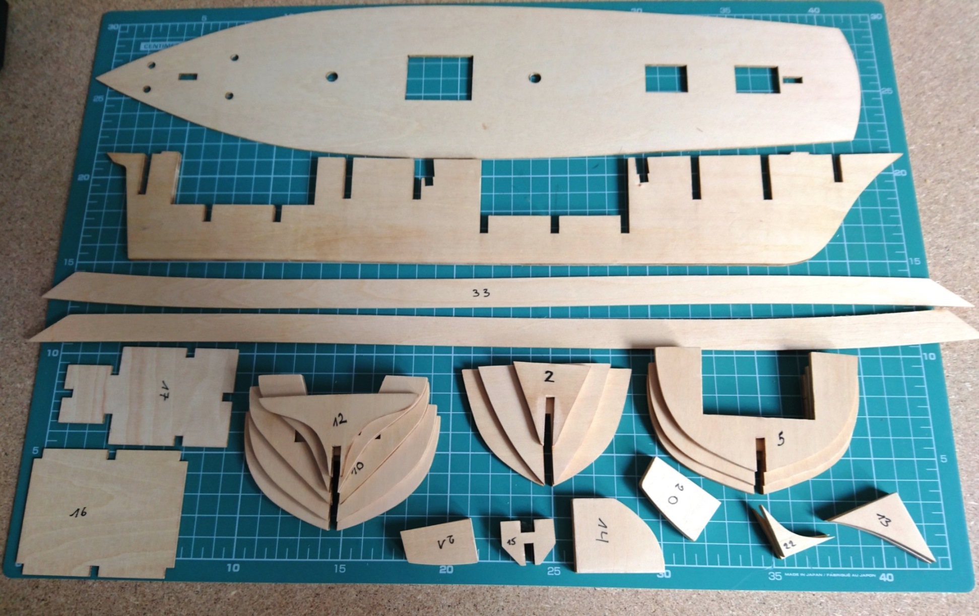Tutaj wycięte elementy szkieletu. Czarne ślady po laserze zeszlifowane - gdzieś czytałem, że gorzej się wtedy klei. Ile w tym prawdy nie wiem ale wolałem nie ryzykować.