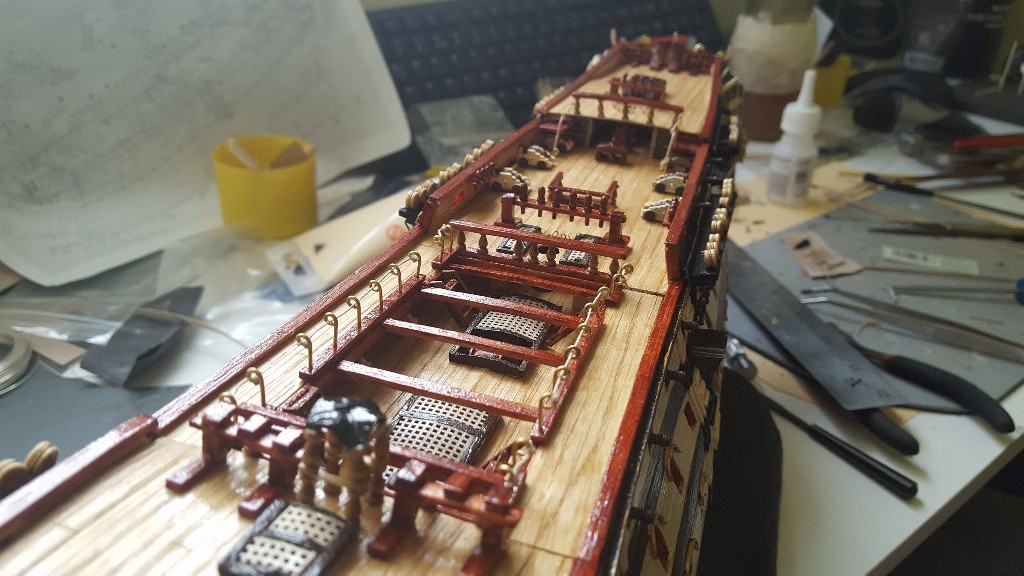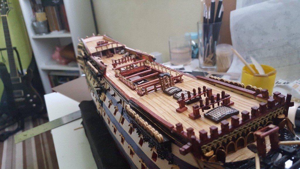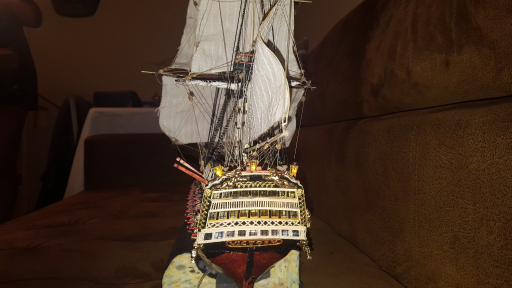 Victory skończę przed świętami, to porobie lepsze foty jak zdołam. Na pewno poprawię tam kilka rzeczy, przede wszystkim drugi rząd kolumn na lustrze rufy, bo nie wiedzieć czemu zrobiłem jakieś krzyżyki. Ornamenty na rufie chwilowo też nie są takie, jakie obecnie ma Victory, ale zrobię i zamienię, jak ogarnę sobie warsztacik, bo rzeźbienie i szlifowanie w pokoju doprowadza moją żonę do histerii.