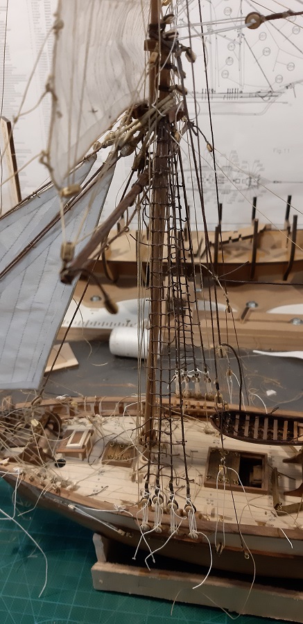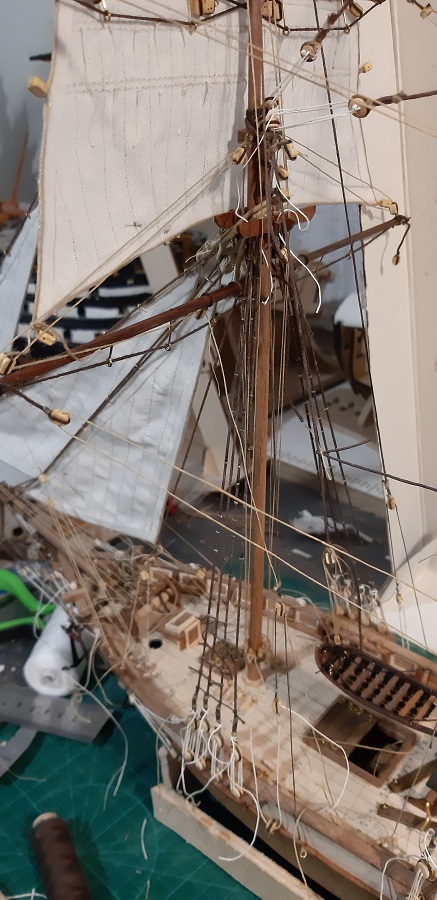 Wykonałem wszystkie odciągi głównego żagla fokmasztu.
