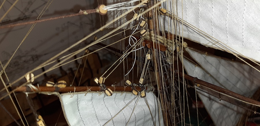 Wykonałem szoty głównego żagla fokmasztu i zrobiłem mały postęp przy wyblinkach