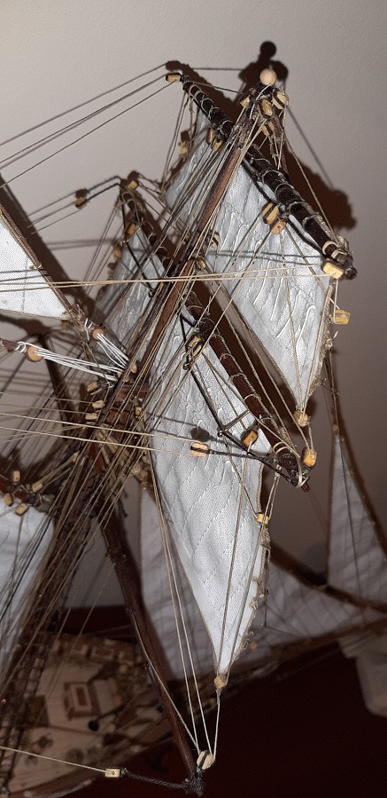 Ukończyłem zwoje lin i buchty na jednej z burt modelu.