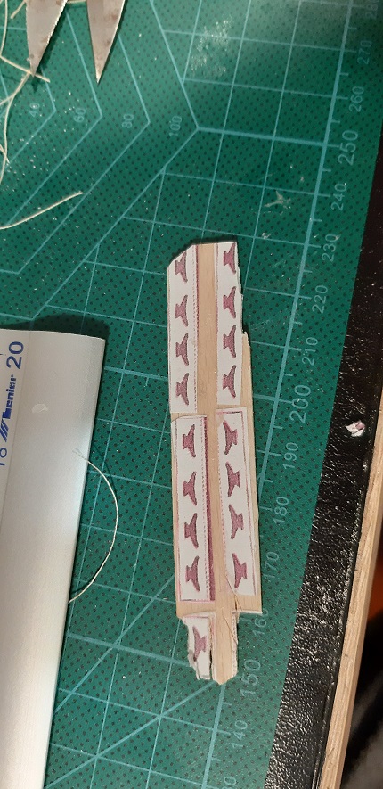Ukończyłem wyblinki na grotmaszcie. Obecna metoda którą wykonuje wyblinki, przy większym modelu, np fregacie czy chociaż brygu, więc do większych jednostek będę musiał ją usprawnić...