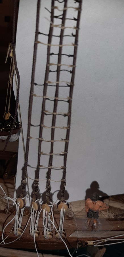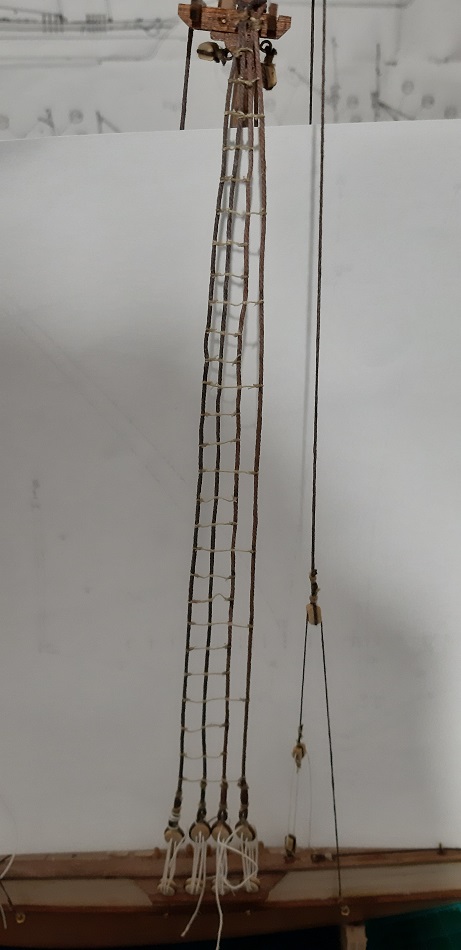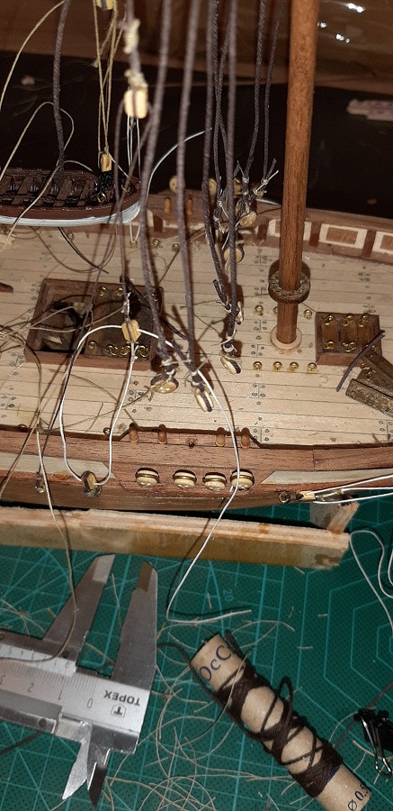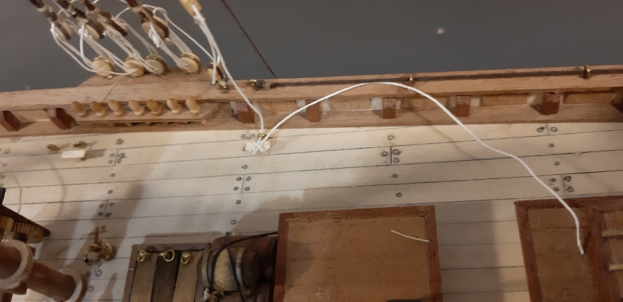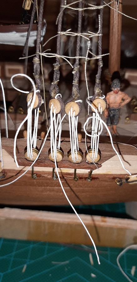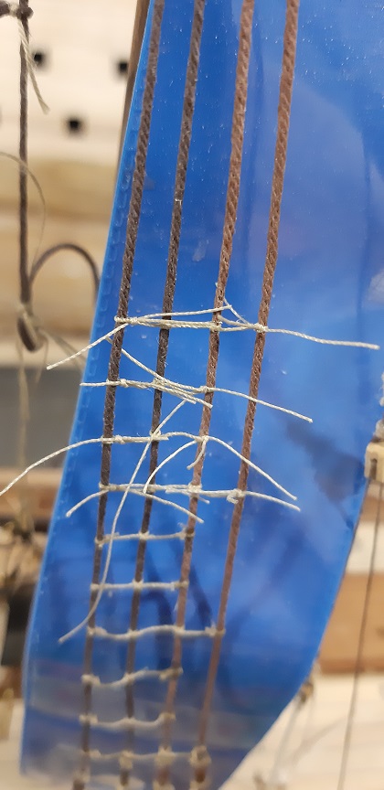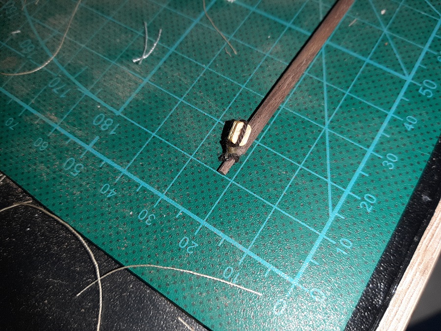 Zacząłem wykonywać wanty na fokmaszcie, jeszcze tylko naprężenie i mogę zabrać się za wyblinki :twisted: Wyblinek jeszcze nie zabezpieczyłem CA