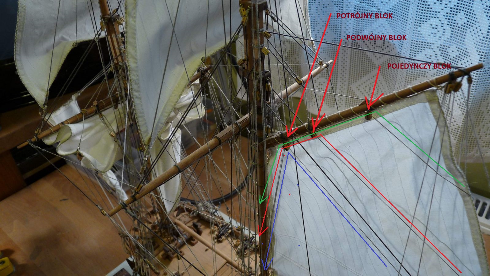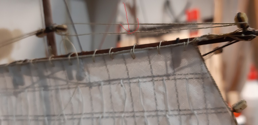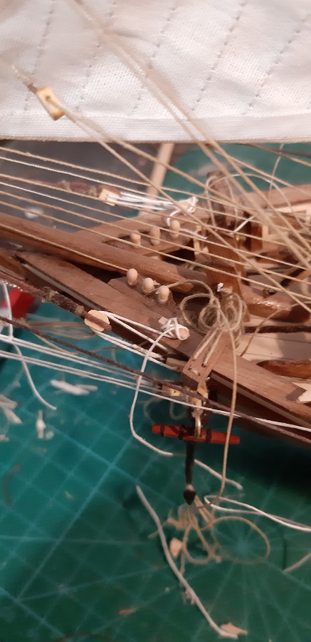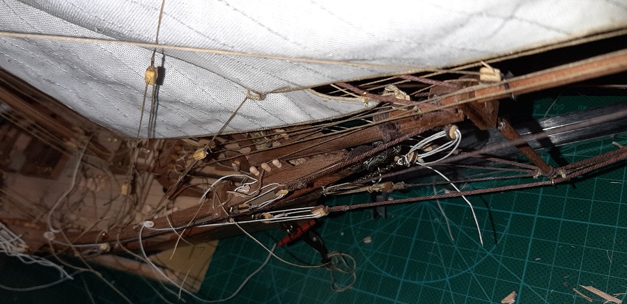 Wykonałem szoty głównego żagla fokmasztu i zrobiłem mały postęp przy wyblinkach