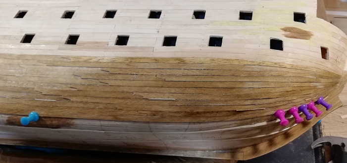 Cześć. Próbujesz wygiąć pasek forniru w części dziobowej przed przyklejeniem? Ja tak robiłem przy Smoku, a też ma dość "kulisty" kształt dziobu.