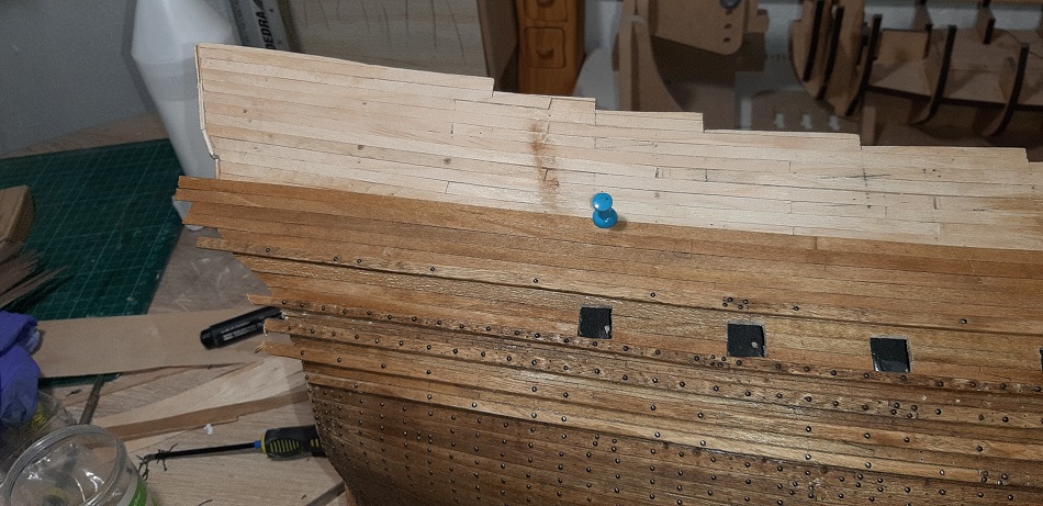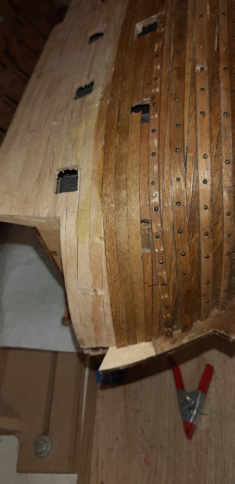 Zacząłem kołkowanie rufy, wzorując się na modelu 1/10 w muzeum Vasy i książce "The royal warship Vasa"