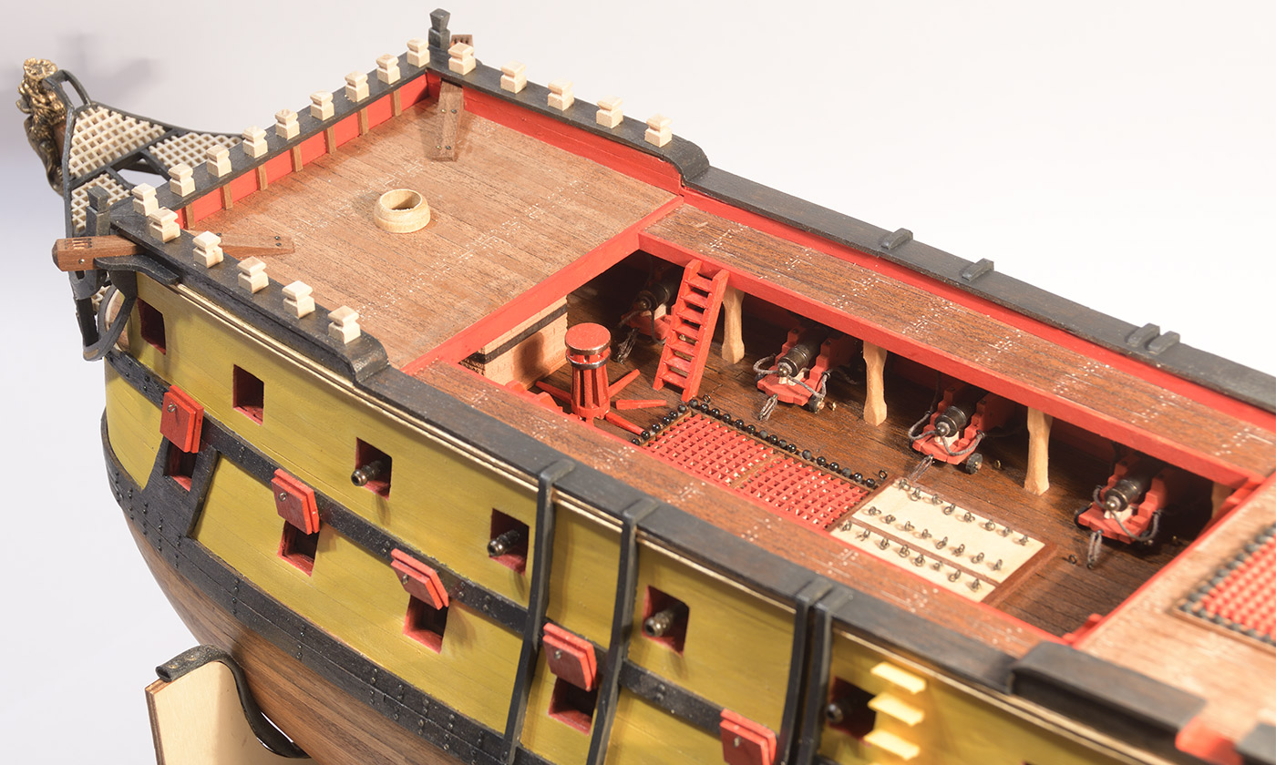 Moim zdaniem okna mogły biec na wysokości ud, ponieważ teraz to są okna, ale w każdej chwili można w nie wstawić dodatkowe armaty, mogę się mylić, to są tylko moje przemyślenia. Model pierwsza klasa bardzo Ci kibicuję.