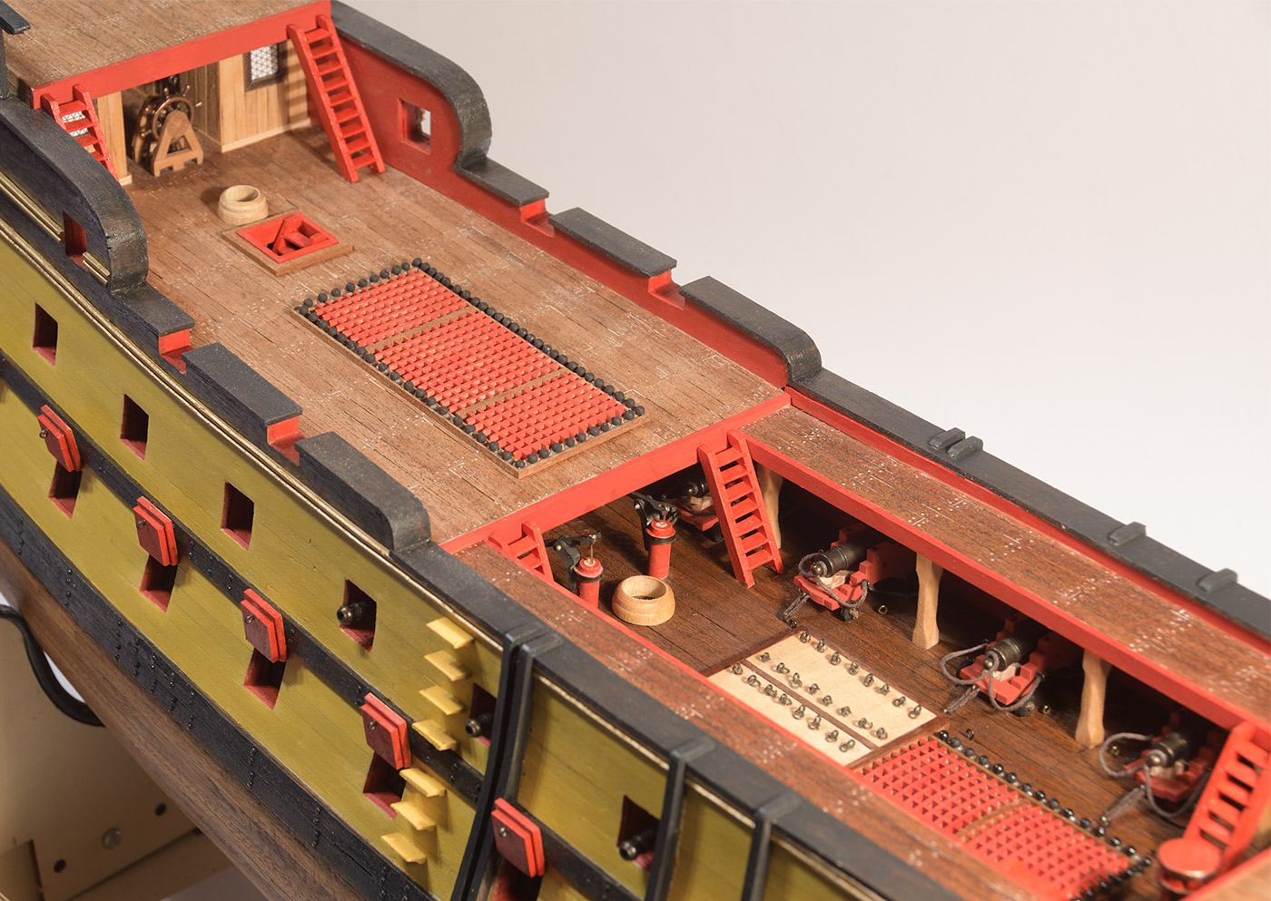 Moim zdaniem okna mogły biec na wysokości ud, ponieważ teraz to są okna, ale w każdej chwili można w nie wstawić dodatkowe armaty, mogę się mylić, to są tylko moje przemyślenia. Model pierwsza klasa bardzo Ci kibicuję.