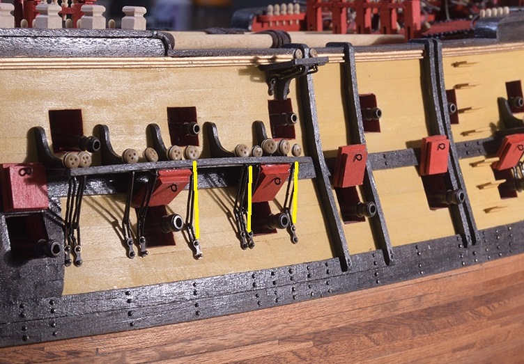 Mnie też niedługo czekają ławy wantowe i mocowania jufersów i zastanawiam się, czy odciagi nie powinny raczej biec tak jak zaznaczyłem żółtą linią. Czyli to pierwsze ogniwo powinno być odgięte za mocowaniem do burty.