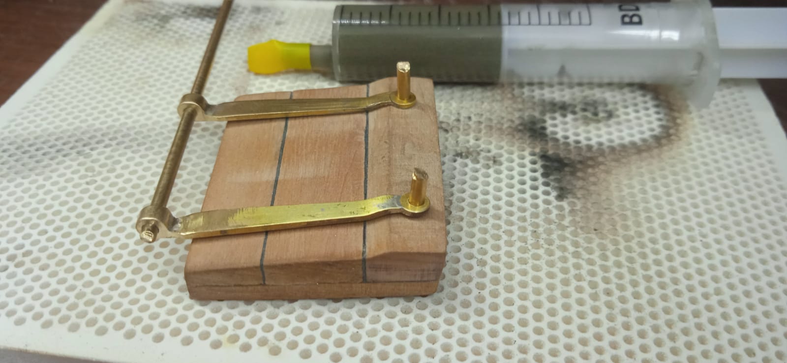 Będę musiał najpierw powyginać/dopasować część zawiasu a potem dopiero dolutować okrągłą część.