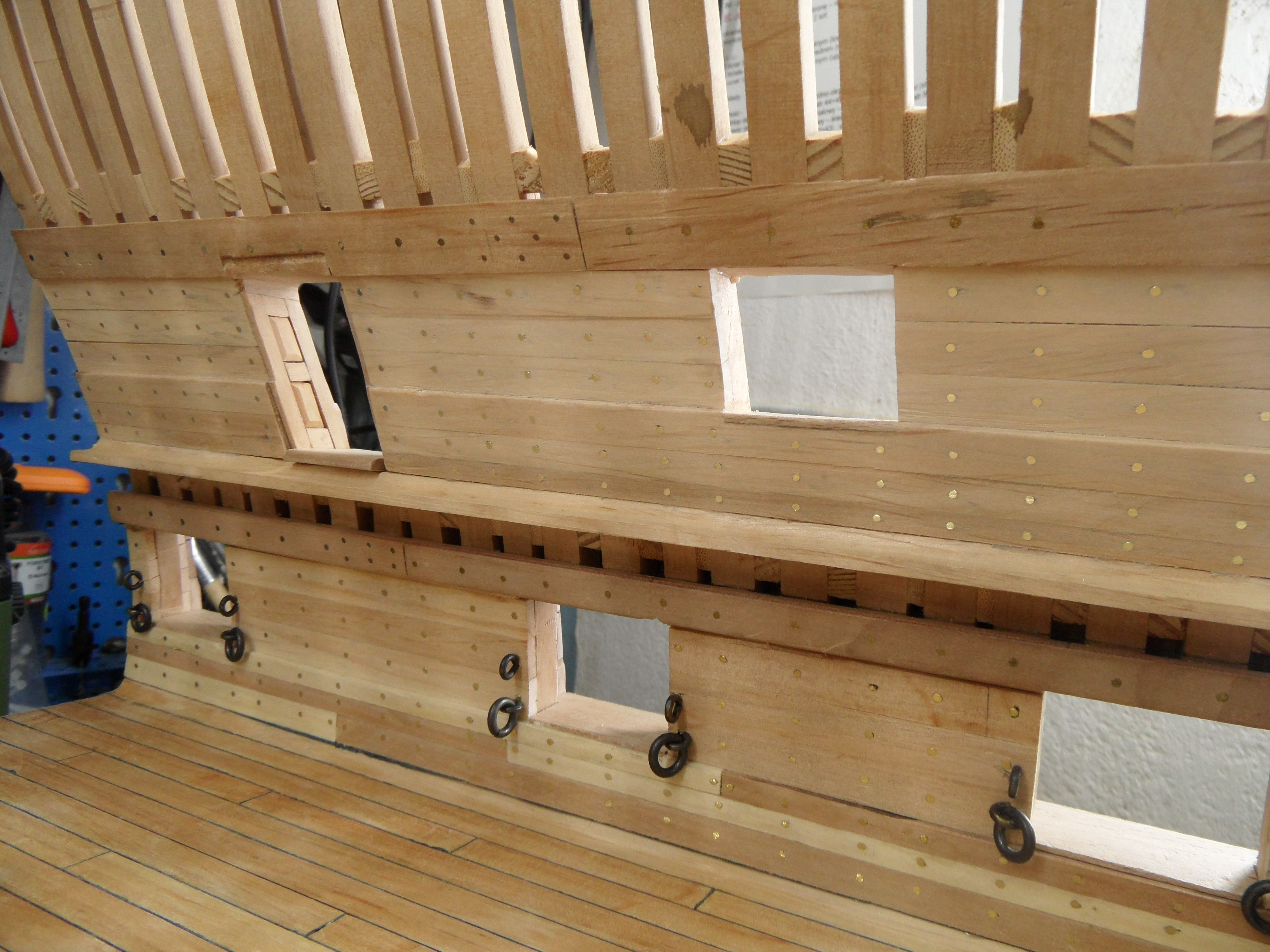 Lutowanie mi jakoś nie idzie, więc próbuję majstrować przy burtach i ich detalach.