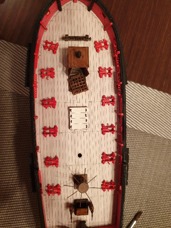 Czekam na dostawę 2mm bloczków z gpmu, aby zacząć wiązać lawety. Brakuje mi również oczek na burtach ale tym się zajmę po skończeniu kompletu dział.