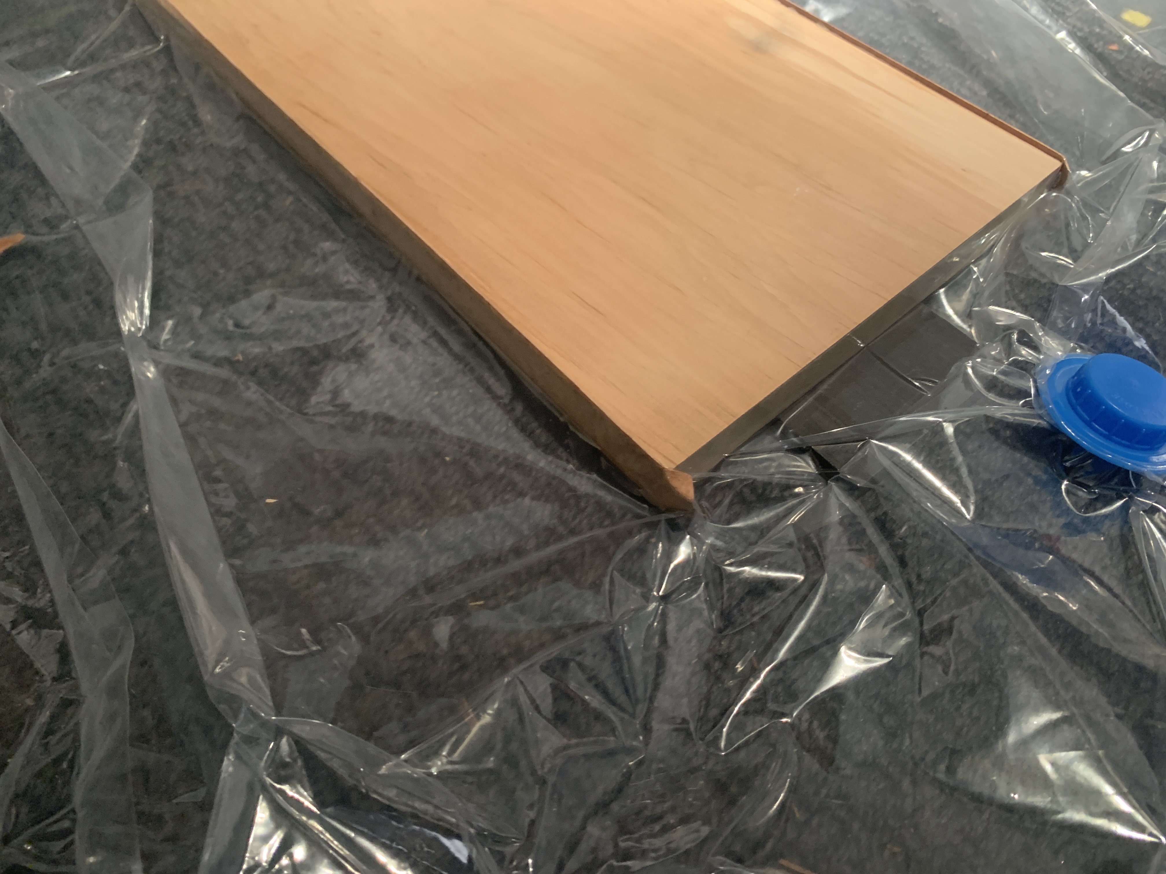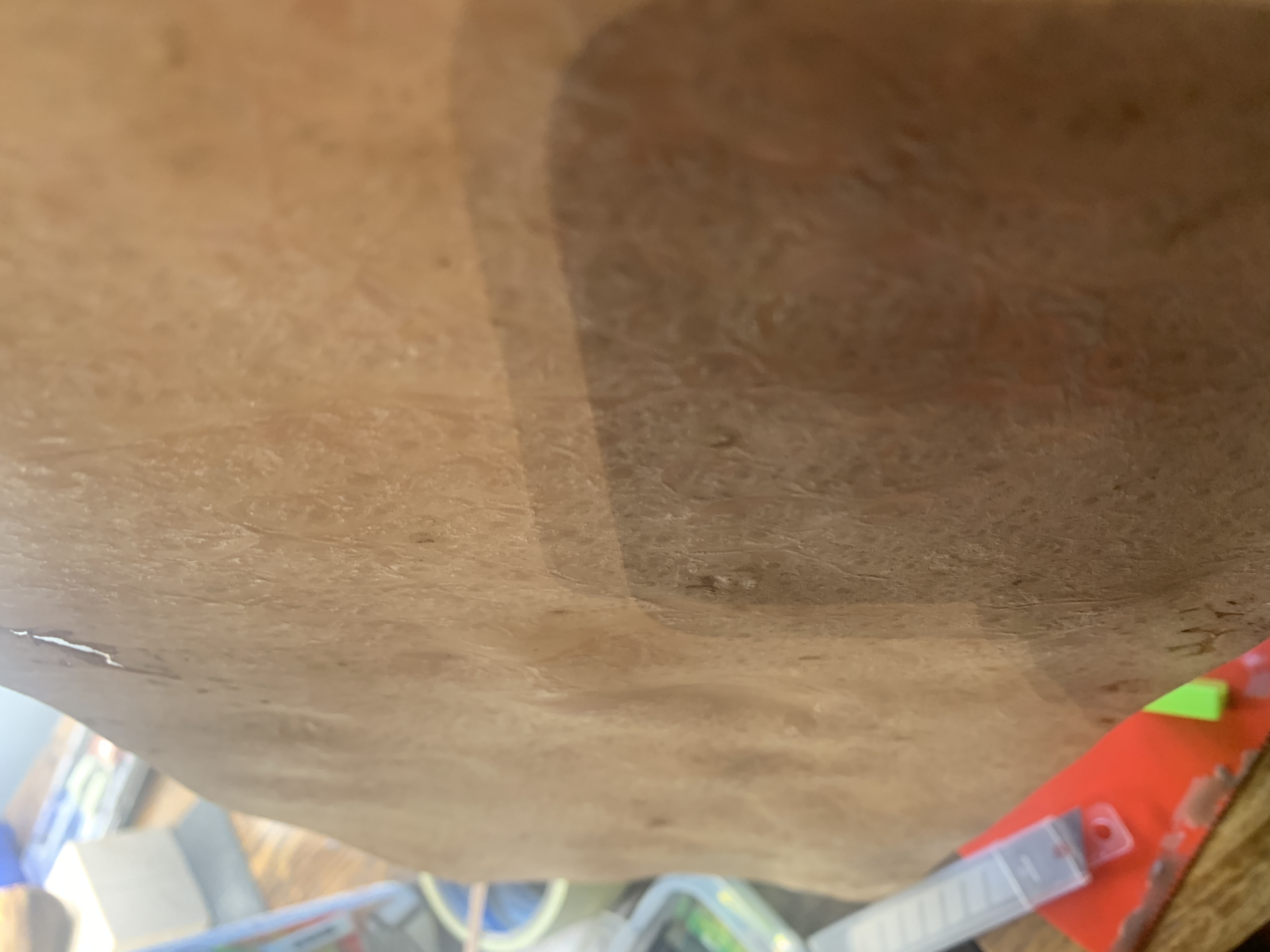 Nie łudź się, że tych połączeń nie będzie widać. Olejowanie, caponowanie czy bejcowanie jeszcze bardziej je uwydatni. Myślę, że zrywanie można sobie darować. Teraz należało by przykleić grubsze odbojnice i wzmocnienia i położyć drugie poszycie, ale fornirowe. Łatwiej będzie rozłożyć te połączenia dech poszycia. Myślę, że powinieneś dołożyć większej staranności w pasowaniu krawędzi wzdłużnych poszycia.