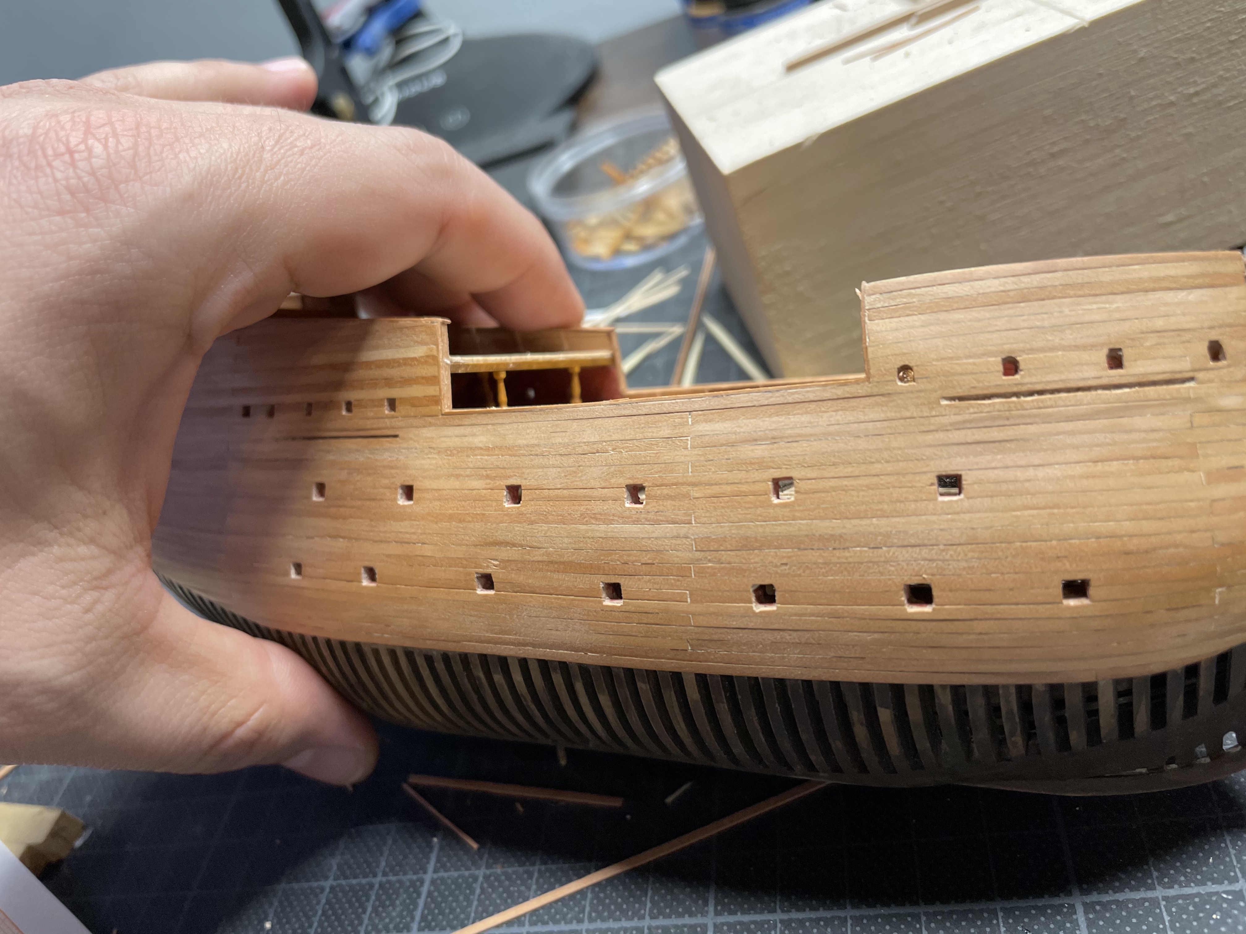 Można powiedzieć, że dopełznąłem do końca pewnego etapu. Poopdeck zamknięty. Będzie jeszcze trochę pokładów ale to dopiero przy okazji ronienia burt.