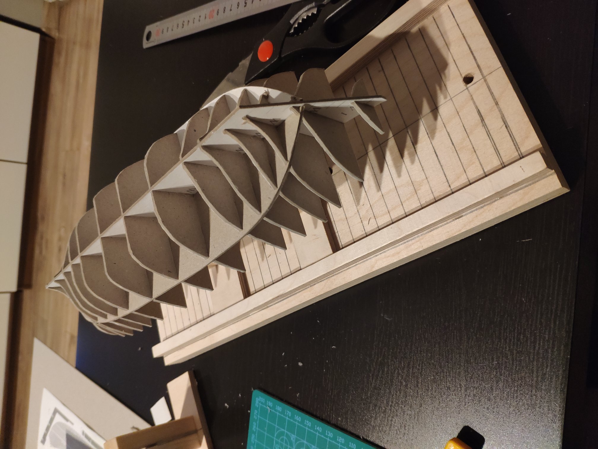 A może te wręgi tak mają być ? Znalazłem wątek kolegi Michała na naszym forum z tym modelem który wyciął wręgi laserowo z MM i ma tak samo http://www.koga.net.pl/forum/viewtopic.php?f=7&t=34758. Tylko jak to pokryć jak jest taki uskok ? Zamówiłem tekturę bo mi brakło i czekam
