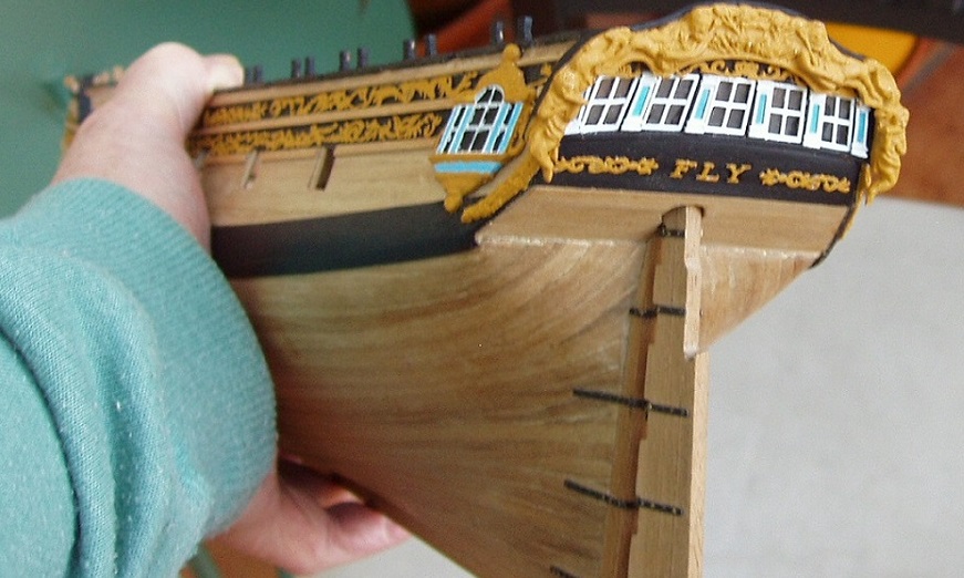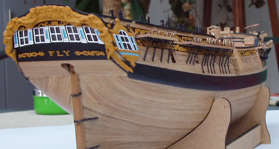 https://www.modelships.de/HMS-Fly/dEL4A8785.jpg Mysle, ze byloby to tez szybsze i latwiejsze, niz przesuwanie luku dzialowego do tylu i idealne zaslepianie tego istniejacego (co takze byloby bledne, niezgodne z planami, mysle)...