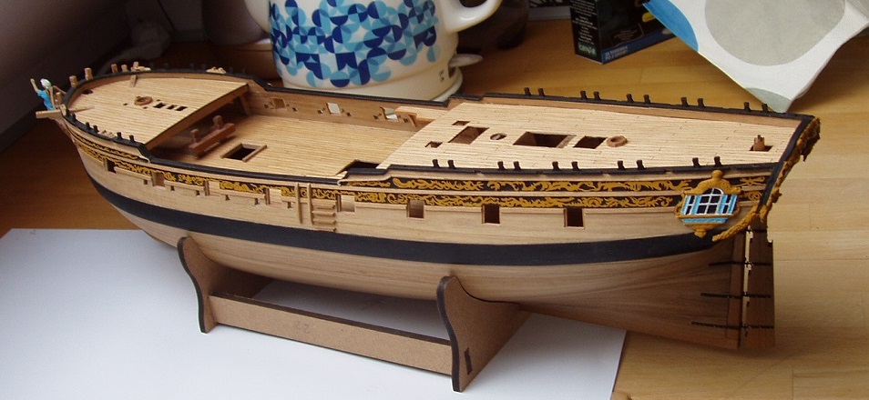 Jeśli chodzi o sam model to aktualnie robię "mebelki" pokładowe. Chcę uniknąć czerwonego koloru który maskuje sklejkę użytą do ich wykonania ale czerwony kabestanu czy osłony jarzma rumpla mnie nie odpowiada. Parę zdjęć niżej. Pozdrawiam Janek