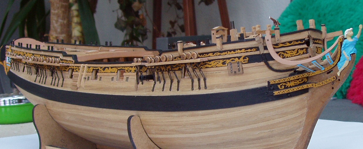 https://www.modelships.de/HMS-Fly/dEL4A8785.jpg Mysle, ze byloby to tez szybsze i latwiejsze, niz przesuwanie luku dzialowego do tylu i idealne zaslepianie tego istniejacego (co takze byloby bledne, niezgodne z planami, mysle)...