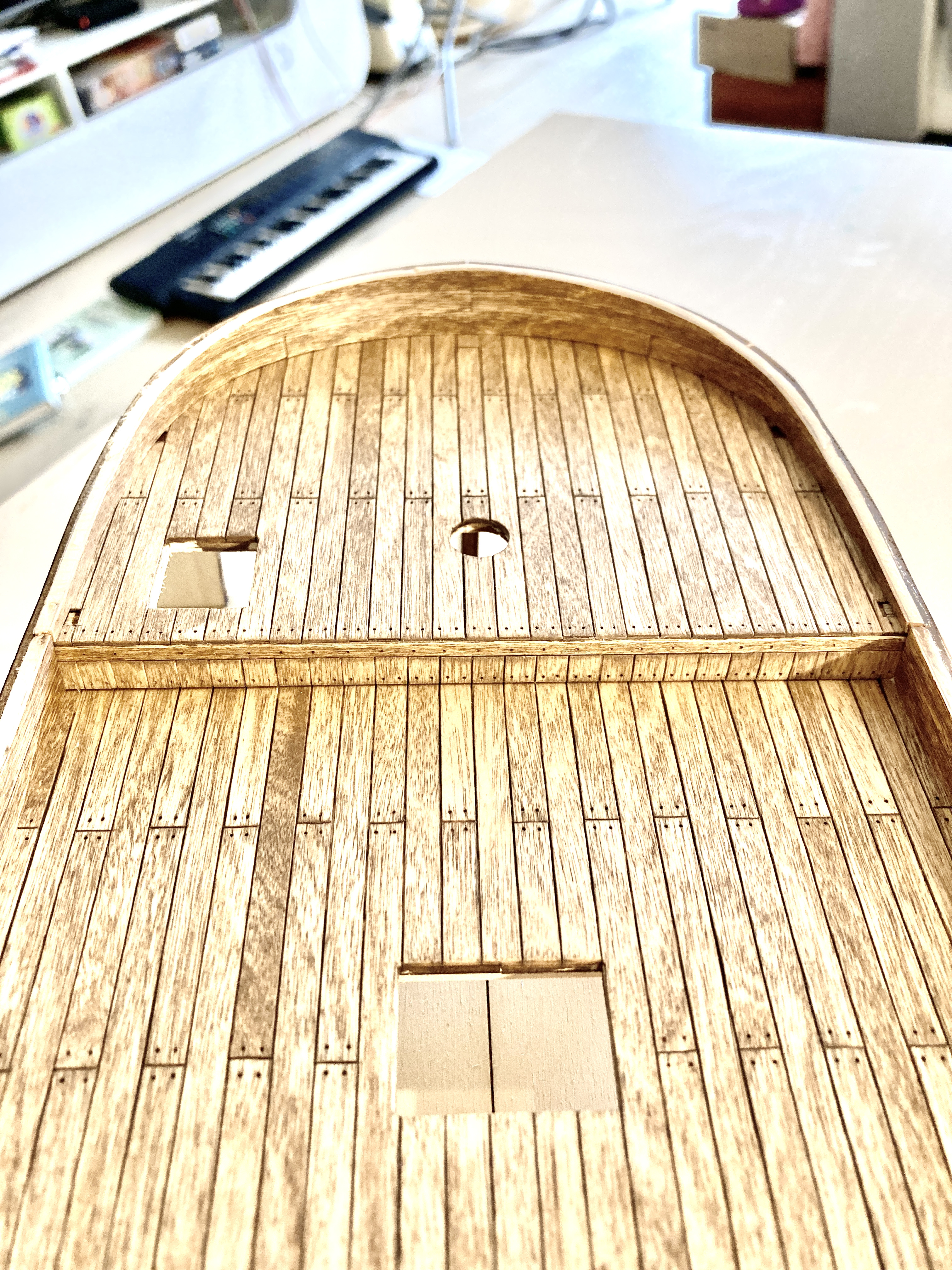 Cześć Marcin. Pokłady ładnie zrobione, kolorystycznie mógł być jaśniejszy bez tych ciemnych przetarć. Przy kolejnym dopracujesz kolor i szczegóły i będzie git.