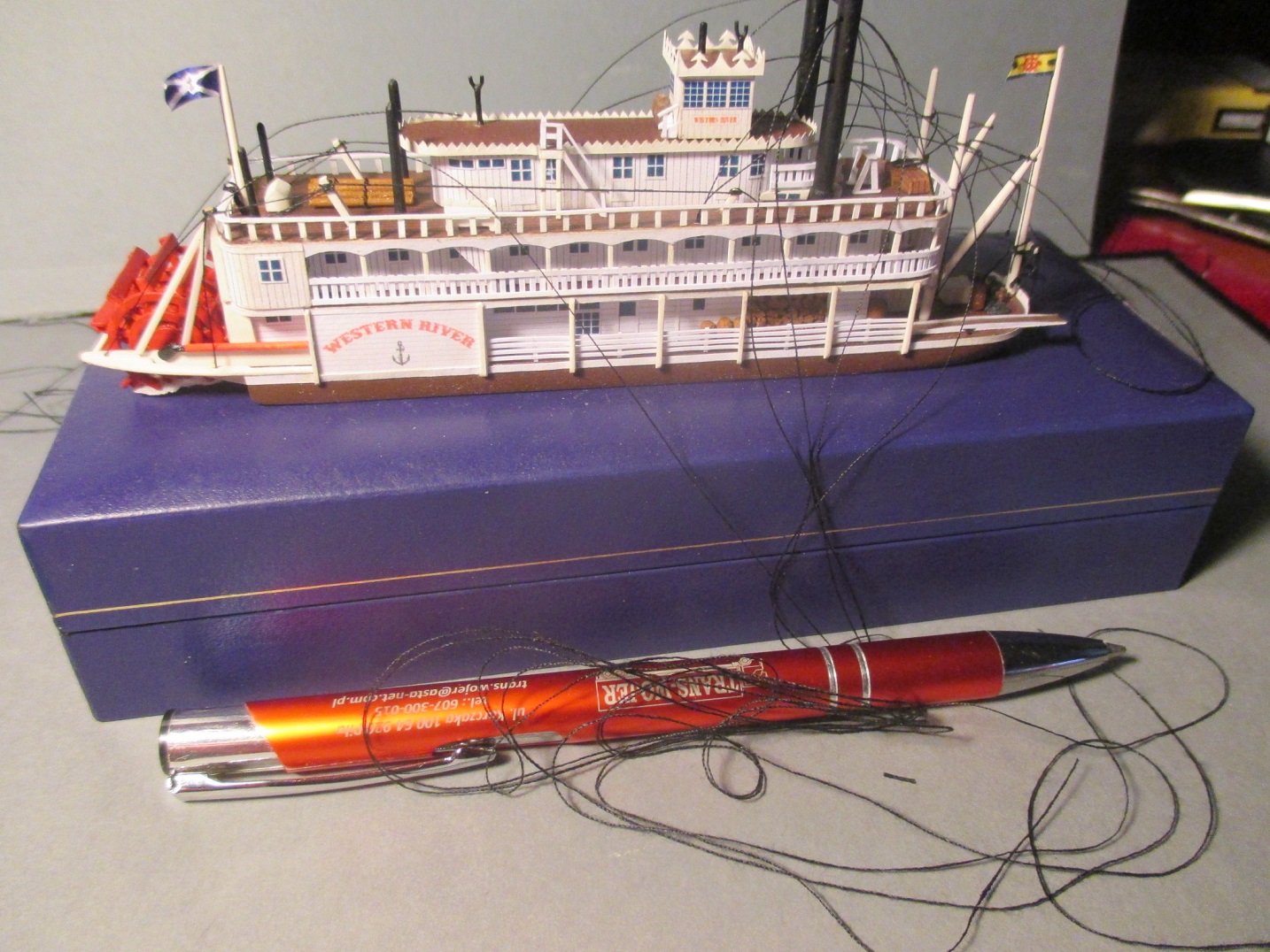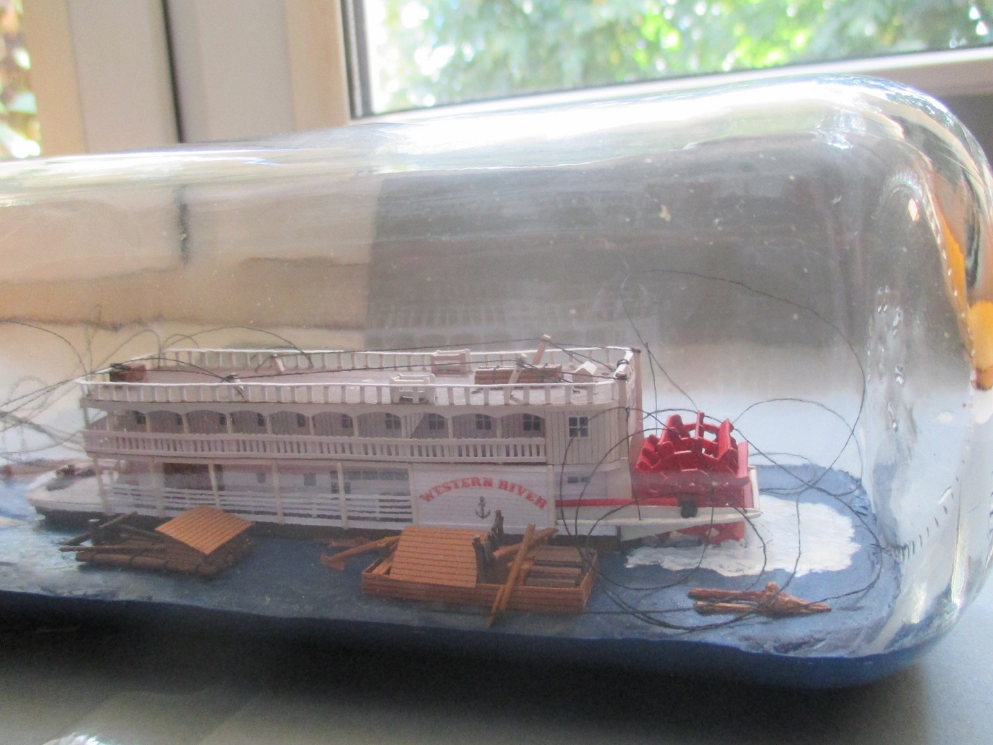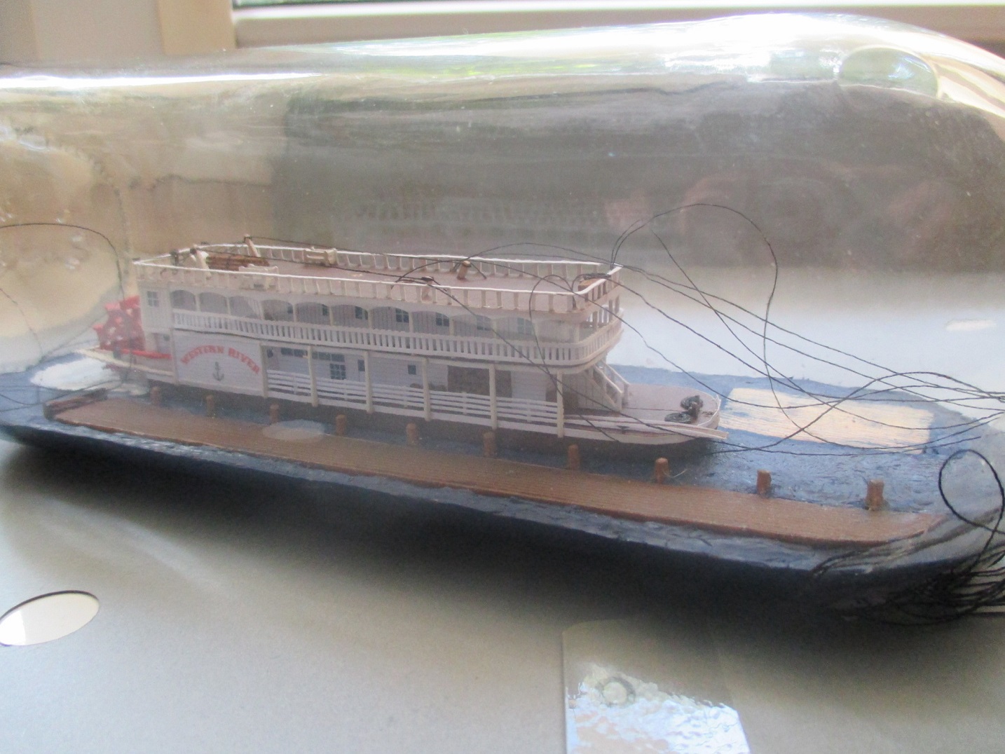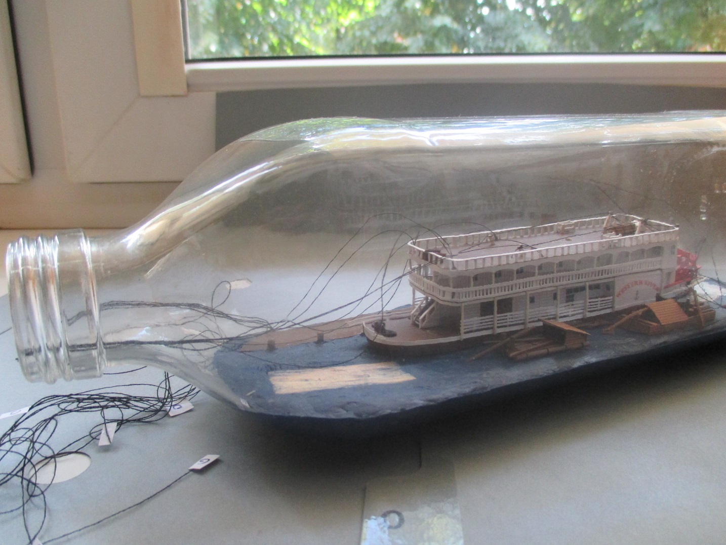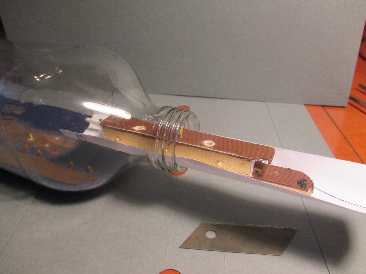 Po wielu przygodach podczas budowy udało mi się dotrwać do końca. Model skończony i ostatni raz złożony do kupy. Na niektórych zdjęciach widać, że niedokładnie go złożyłem. Takiego błędu w butelce nie będę mógł już popełnić. Zrobię jeszcze małe poprawki i czas na wpłynięcie do środka.Teoretycznie wiem jak to zrobić ale jak wyjdzie w praktyce tego nie wiem. Nie będę się z tym spieszył.Każda czynność musi być przemyślana,pod ręką muszę mieć przygotowane wszystkie potrzebne narzędzia, żeby ich póżniej nie szukać w pośpiechu. Zdjęcia oczywiście będą.