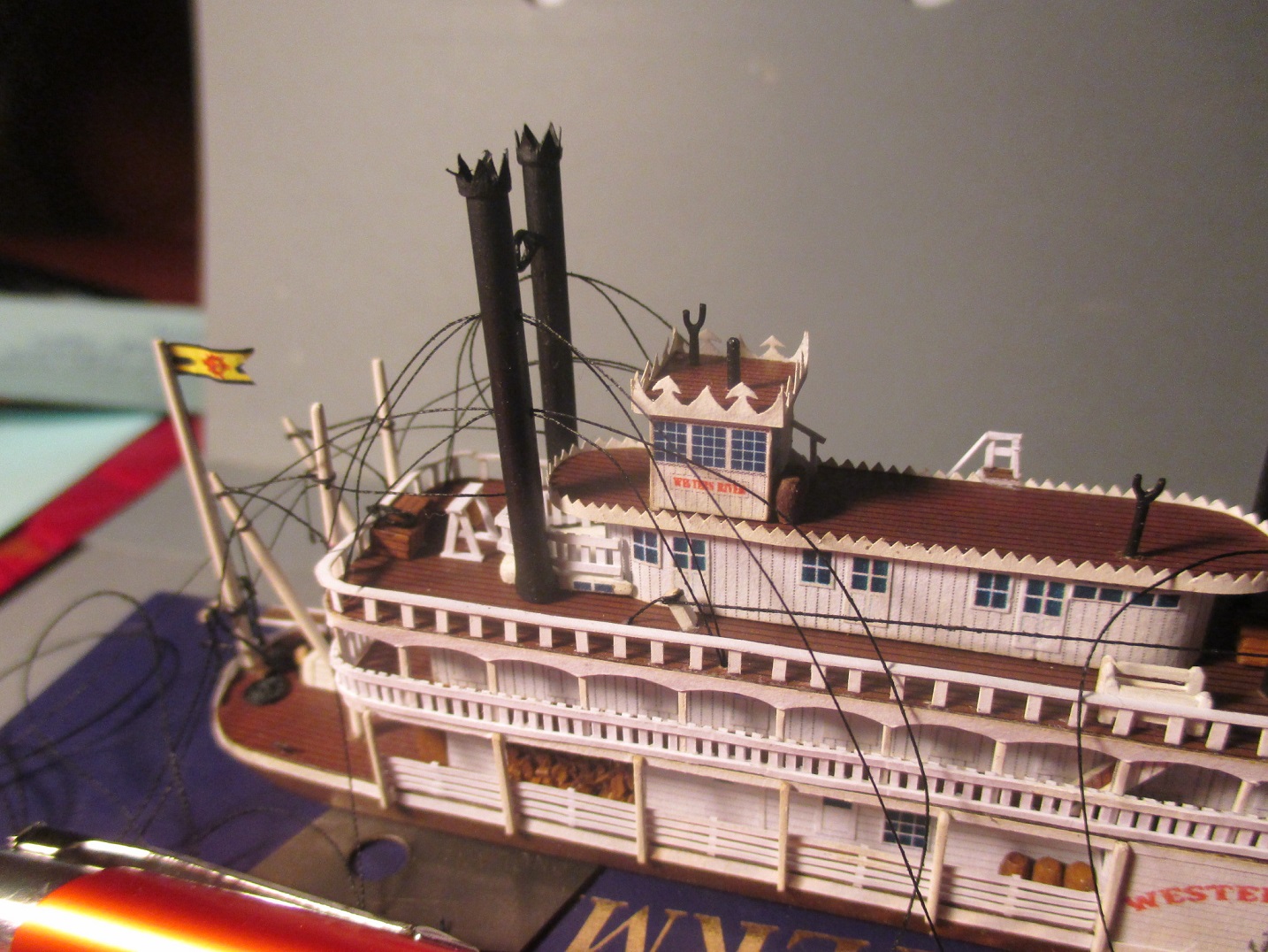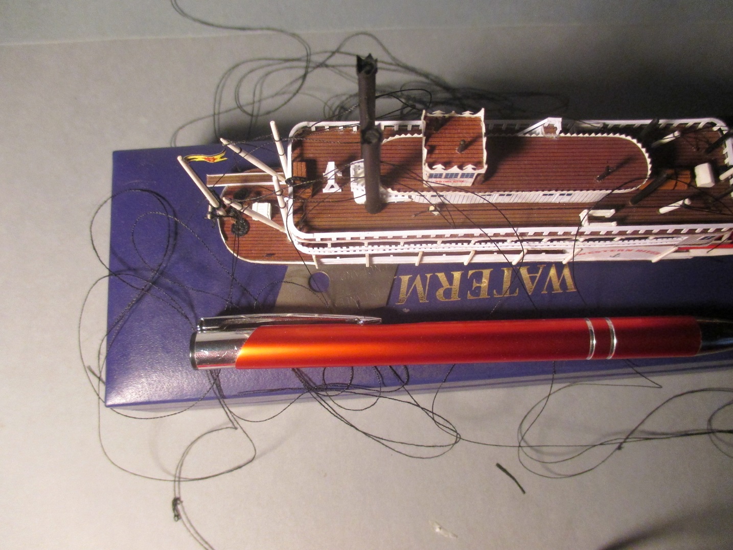 Zamontowałem drugie pięterko.Niby nic wielkiego. Tylko dwie części ze sobą złączyć i przykleić do dolnego pokładu. Dwie godziny z małym hakiem mi to zajęło.Ale udało się bez żadnych strat.To chyba była najtrudniejsza operacja.