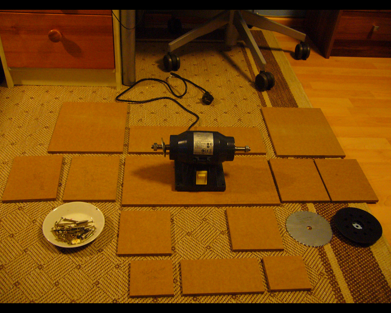 na blaty użyłem pozostałości z paneli podłogowych twarde, sztywne i w miarę cienkie, co ma istotne znaczenie zwłaszcza od strony freza.