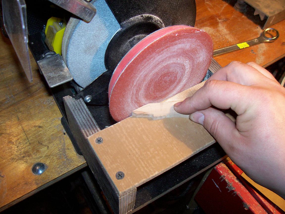 W osłonie kamienia szlifierskiego wyfrezowałem otwór ktury pozwolił mi dokręcić na końcu ściernicę.