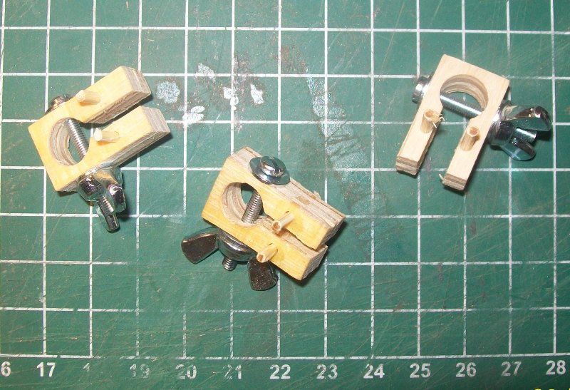 Właściwie widzimy na zdjęciu dwa rodzaje zacisków do sklejki 4 i 6 mm , taki był zamysł aby zrobić do tych dwóch rozmiarów sklejek , ponieważ są to najczęściej stosowane w naszych modelach.