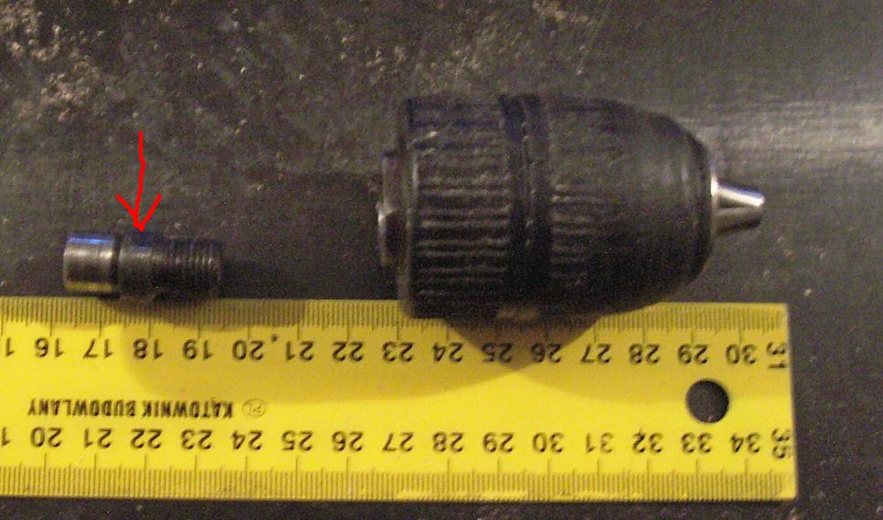 na maszynce jest gwint standardowy, 8x1,25 , tylko te głowiczki z wiertarek nie wiem dlaczego maja przeważnie gwinty calowe i ni jak nie będzie to pasowało, trzeba by znaleść głowiczkę z wiertarki o średnicy mniejszej niż ta na wałku z maszynki i ją rozwiercić i przegwintować na metryczny 8x1,25. Gdzieś w domu mam spaloną wkrętarkę, aż z ciekawości dzisiaj popatrzę co z tego można zrobić.