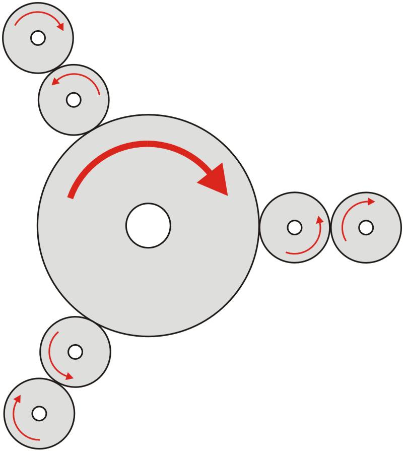 Nie bardzo rozumiem po co stosowałeś dodatkowe kółka.Mogło zostać duże napędowe i małe.Te większe wydają się być nie potrzebne.R