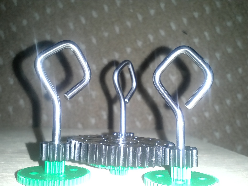 W powstałych otworach umieściłem trybiki maszyneri zielone koła służą jako tymczasowe tuleje.