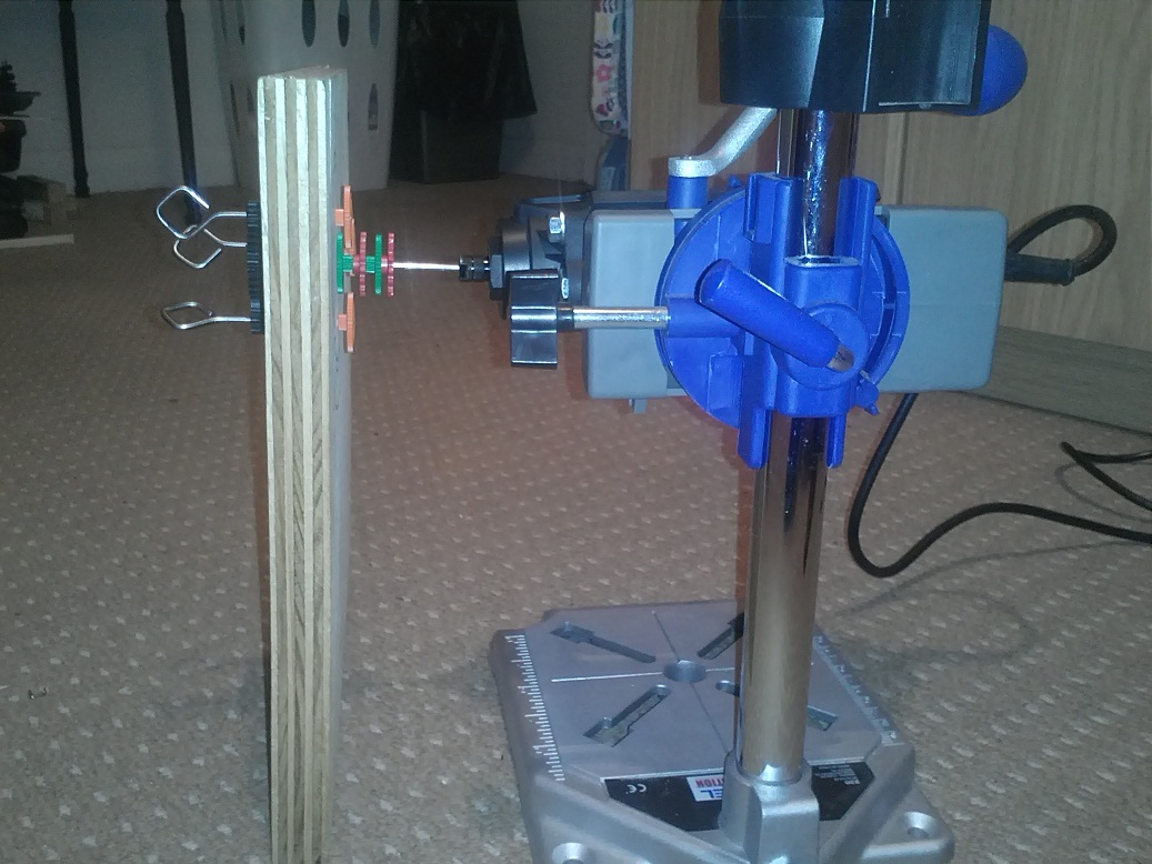Na chwilę obecną planuję całość napędzać dremelem zamontowanym na stojaku