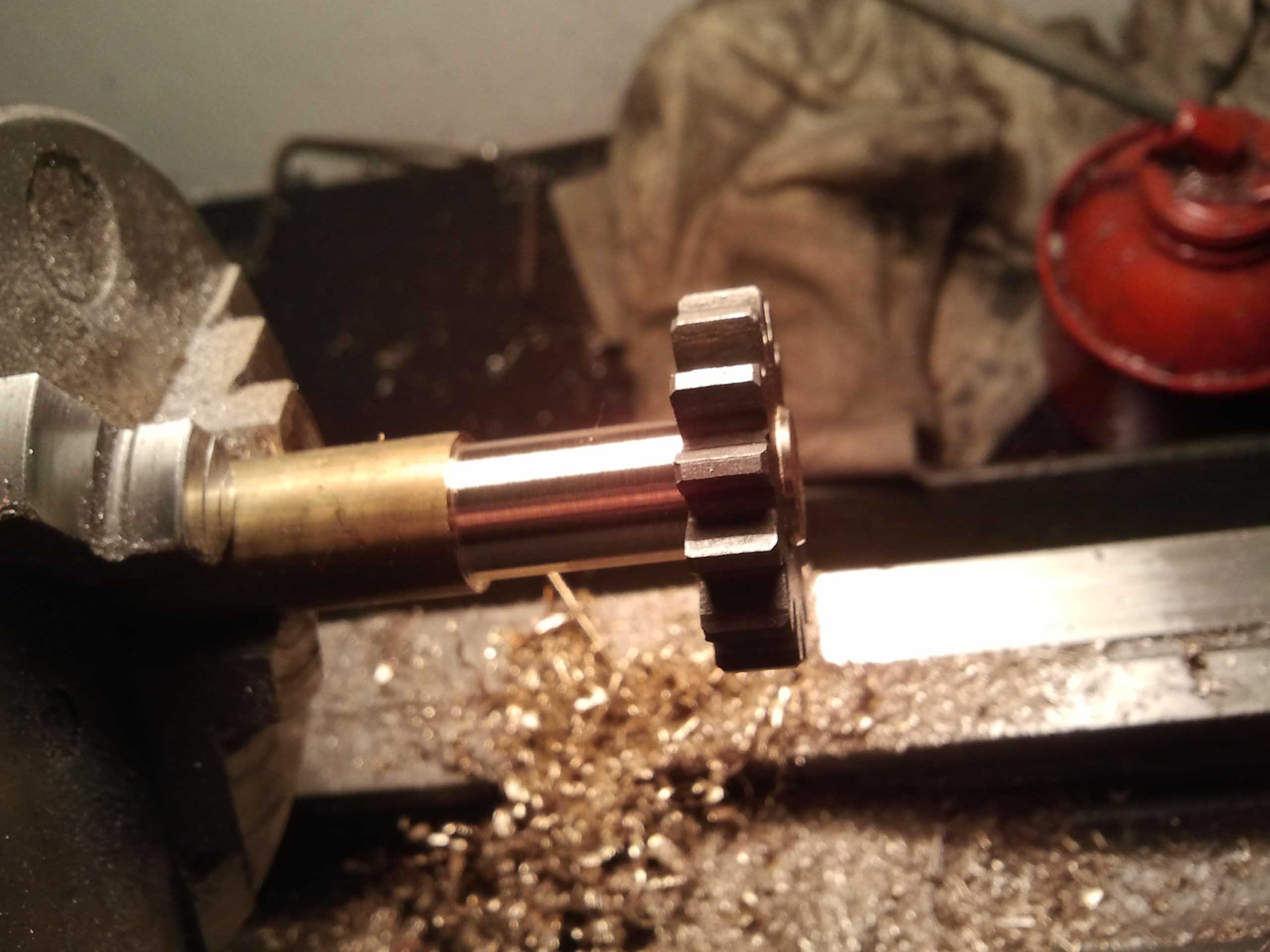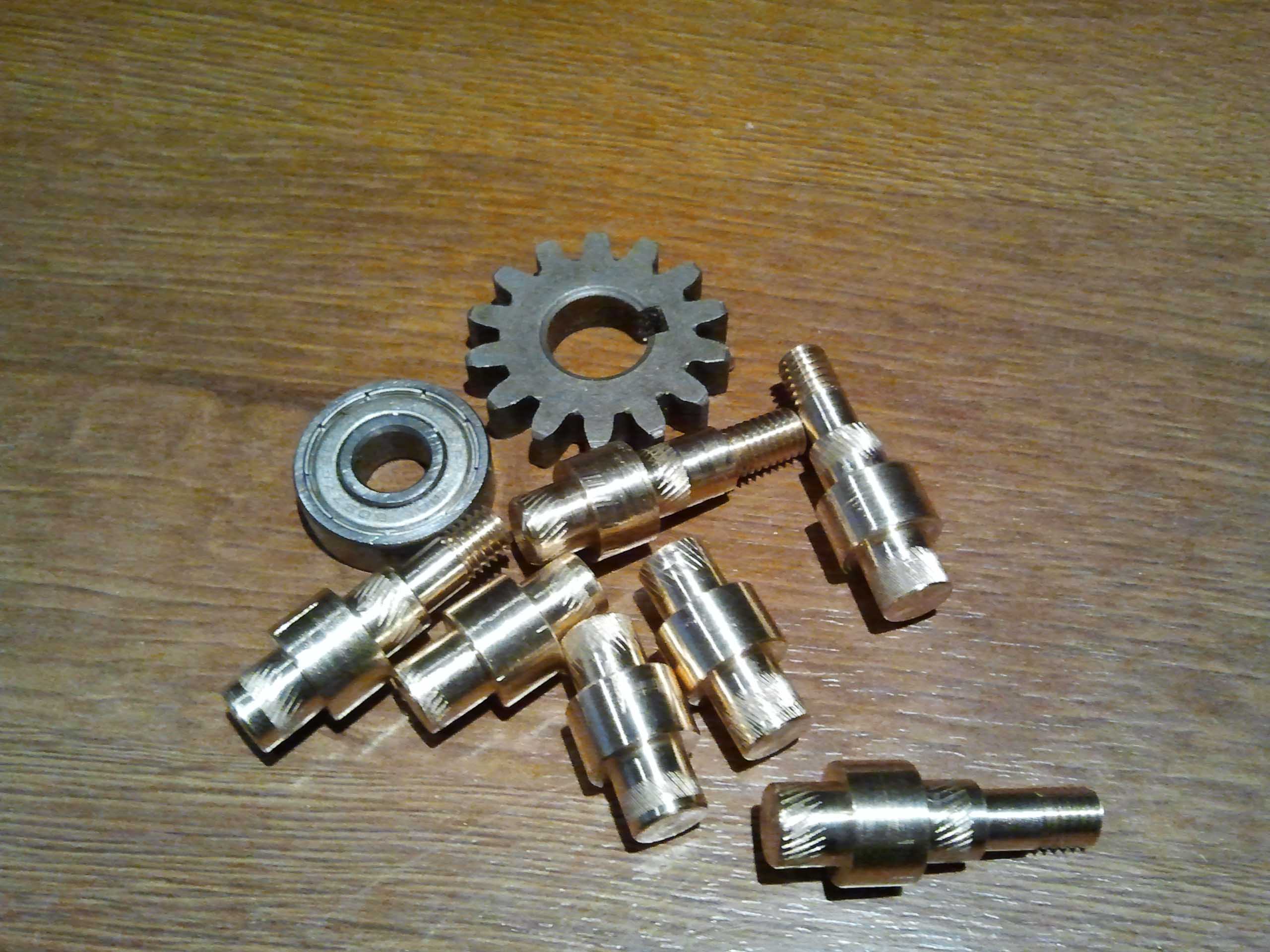 Dziś toczyłem ośki do kół zębatych,te dłuższe,nagwintowane z jednej strony to do koła napędowego od silnika i do kół końcowych.Te krótsze do kół pośrednich.