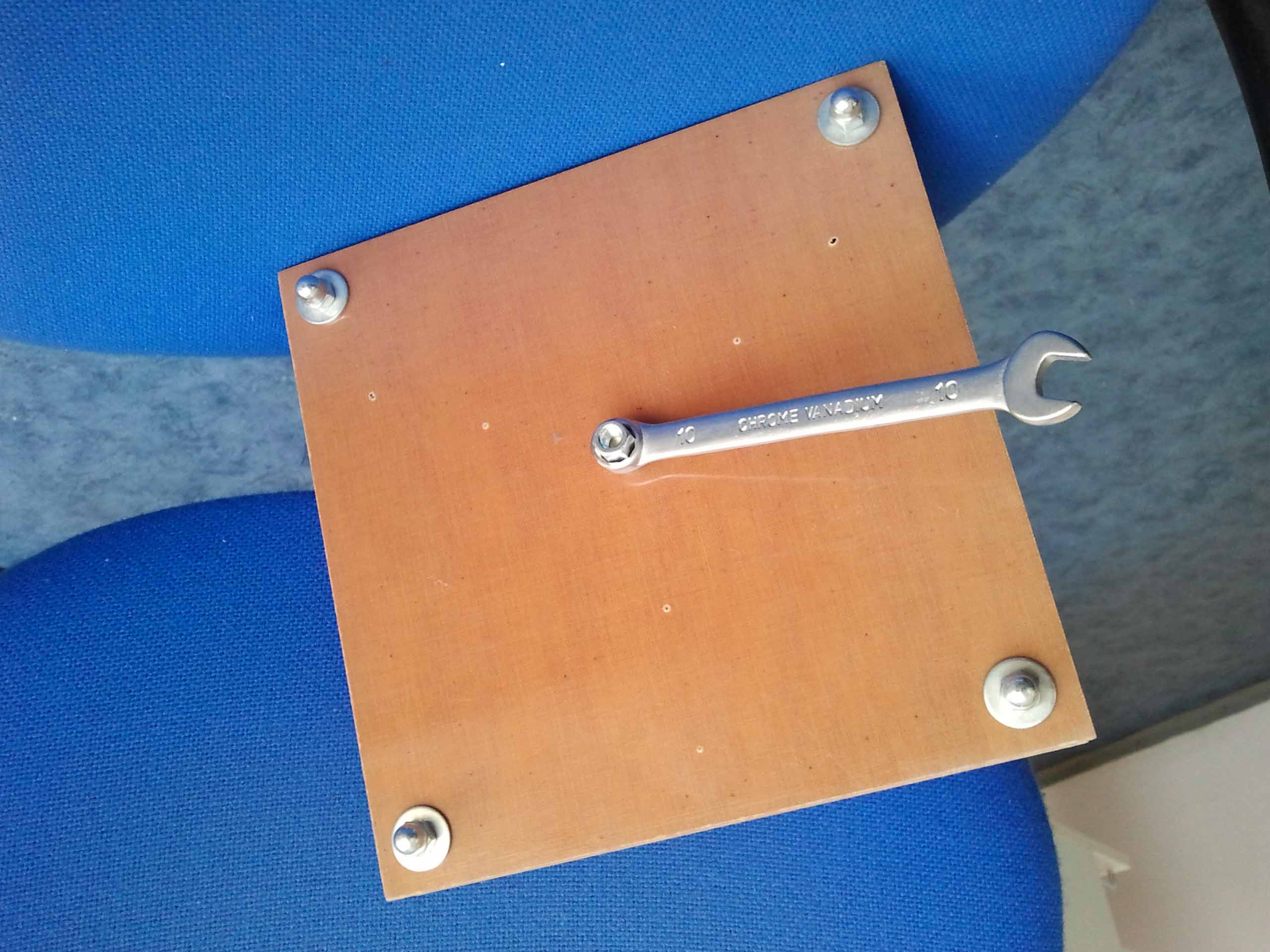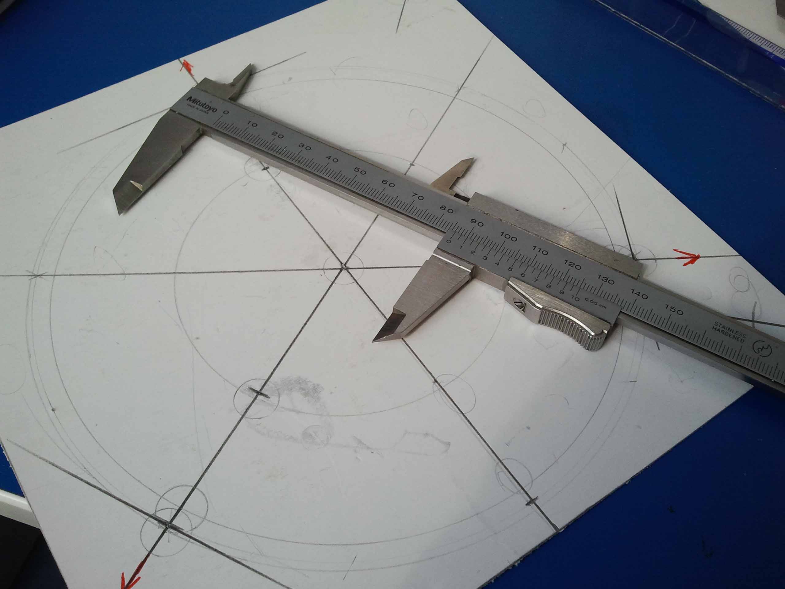 Wstępne przymiarki,w miejscu nakrętek będą haczyki.Koło napędowe z łącznikiem ma być obrócone o 180 stopni.