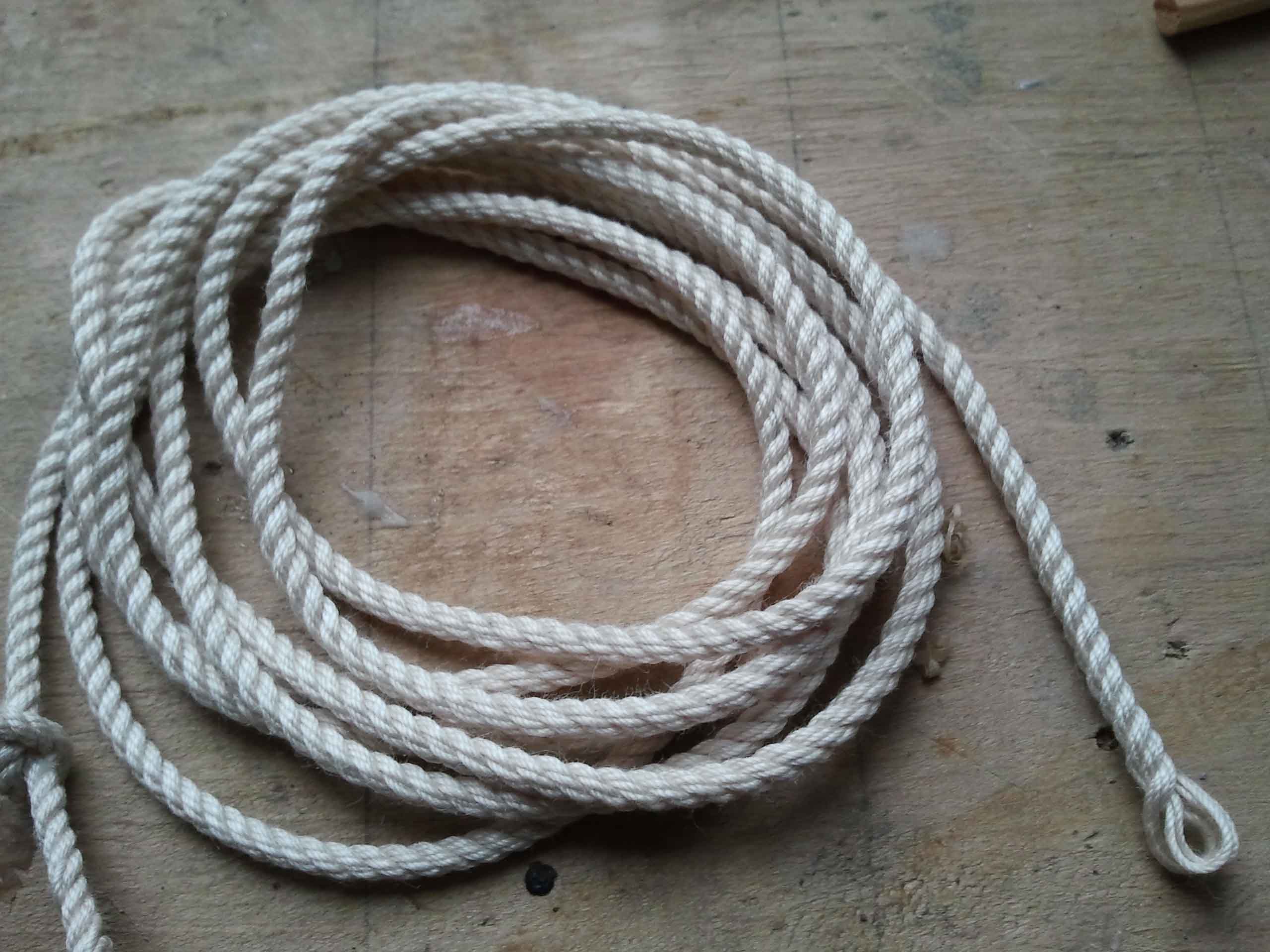 Tak na szybko ukręciłem linkę z 18 nitek ,Długość ok 1,5 m grubość 2,4 mm.Nie używałem prowadnic,grzybka i szpulek.Długość linki ogranicza wielkość pomieszczenia.Mam koncepcję rozwoju tego ropa o przystawki praktycznie kręcące linki gdzie jedynym ograniczeniem będzie długość nici na szpulce.Linka na zdjęciu nie jest zaimpregnowana.