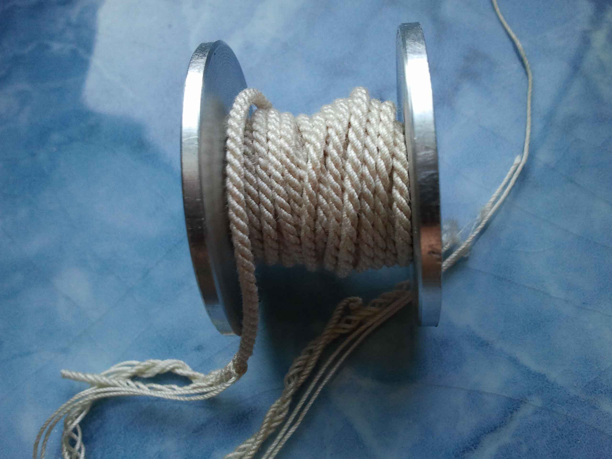 Pierwsze próby z ropem,z długimi nitkami.3x5m nici na rolkę.Pierwsze spostrzeżenia,szpulki mogą być większe przy tej wielkości ropwelk'a.