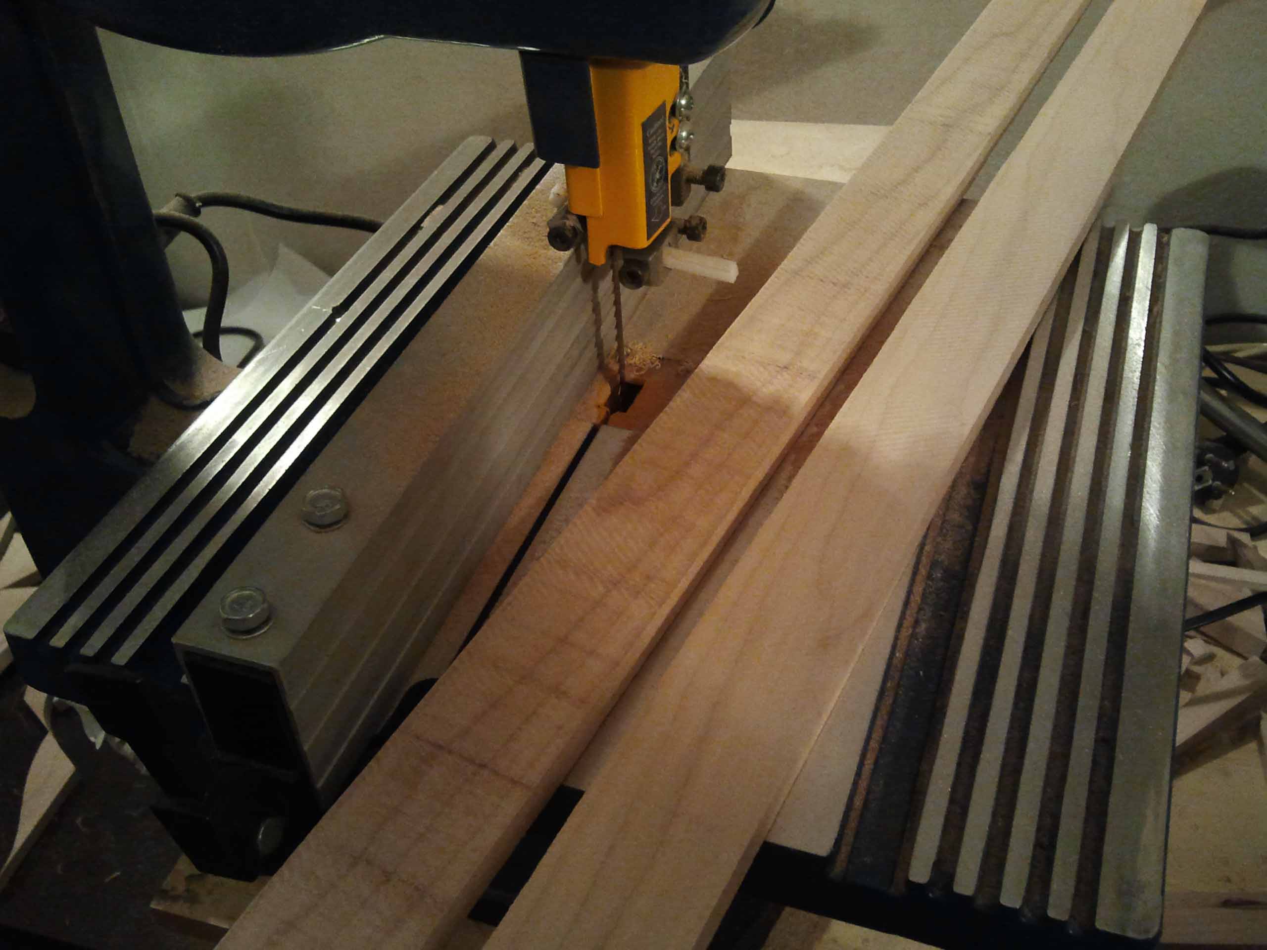 Dziś w ramach oszczędności materiału przeciąłem listwę o wymiarach 21,5x40 x ok 800 mm.Chciałem uzyskać dwie o grubości 10x40 x800mm.Udało się starczyło jeszcze na heblowanie.Piła taśmowa daje rzaz ok 1mm.