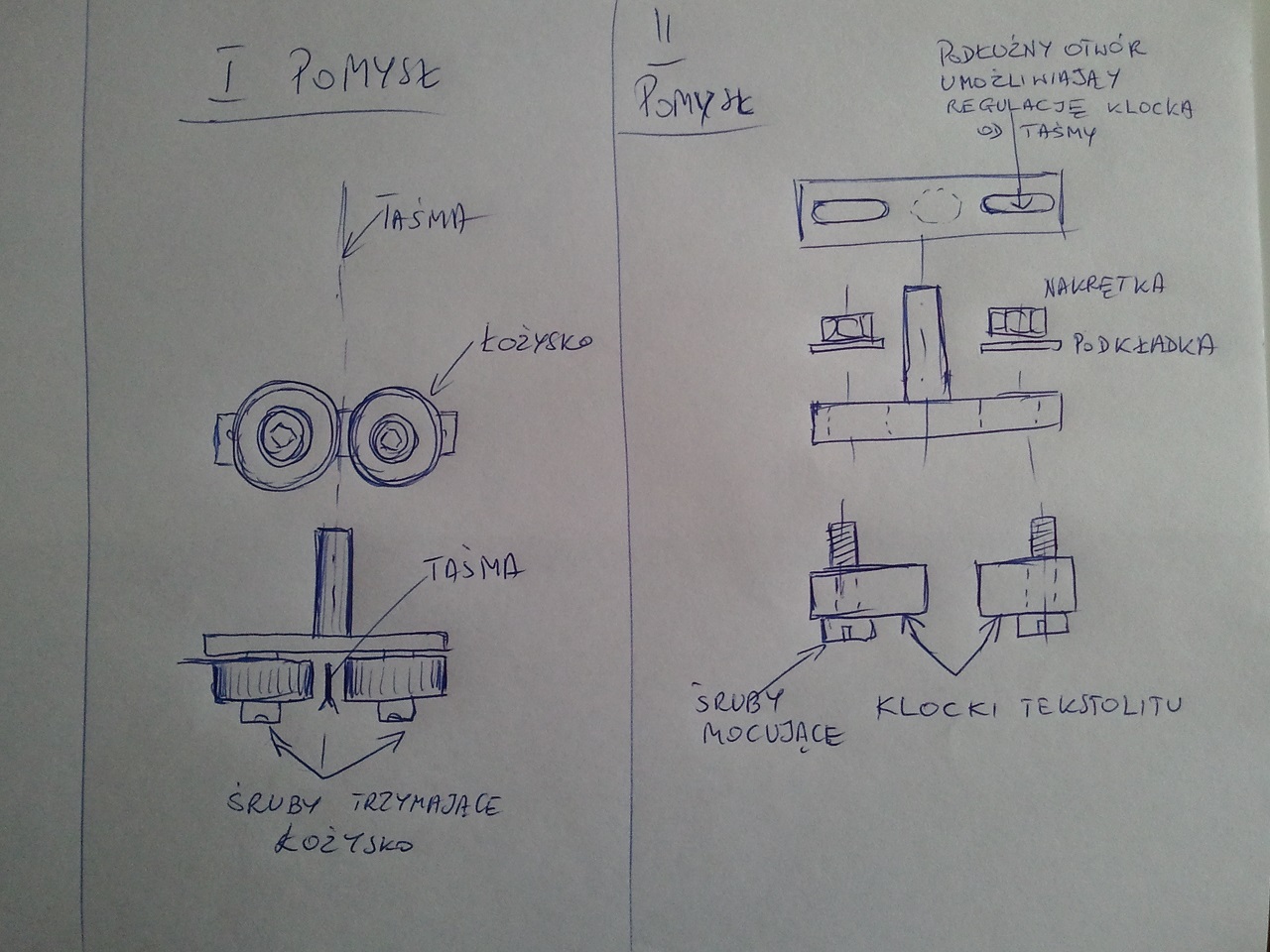Temat taśmówki wraca. Nie mogąc nic znaleźć w necie tańszego kupiłem JET 9 Jest to dokładnie to samo co masz ty. Inaczej się nazywa i inaczej pomalowane. Już podczas regulacji po ustawieniu stwierdziłem brakoróbstwo. Element, w którym mocowane są prowadnice taśmy jest wykonany ze znalu, albo czegoś podobnego. W jednej części gwint był już "fabrycznie" zerwany musiałem przegwintować to na M6. Działa, ale pewnie nie na długo. Musze coś z tym zrobić, bo po paru dokręceniach inne gwinty też diabli wezmą. Zamierzam te elementy wykonać z mosiądzu. Zastanawiam się co by było gdybym wymienił te elementy na takie jak przedstawiłem na rysunku odręcznym. Może ktoś jest "biegły i przebiegły" w tym temacie i coś doradzi konkretnego.