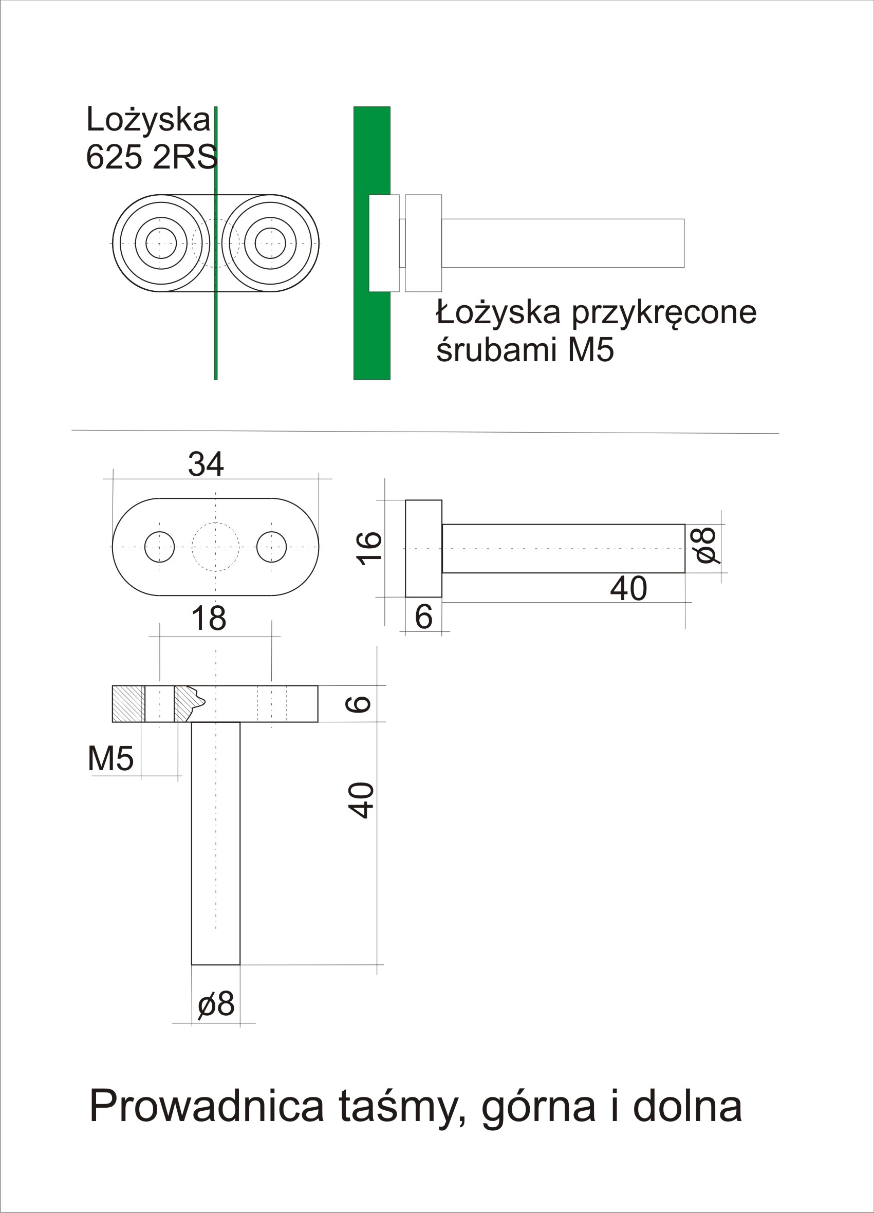 Przedstawiam kolegom rysunek prowadnicy taśmy pomiędzy dwoma łożyskami.