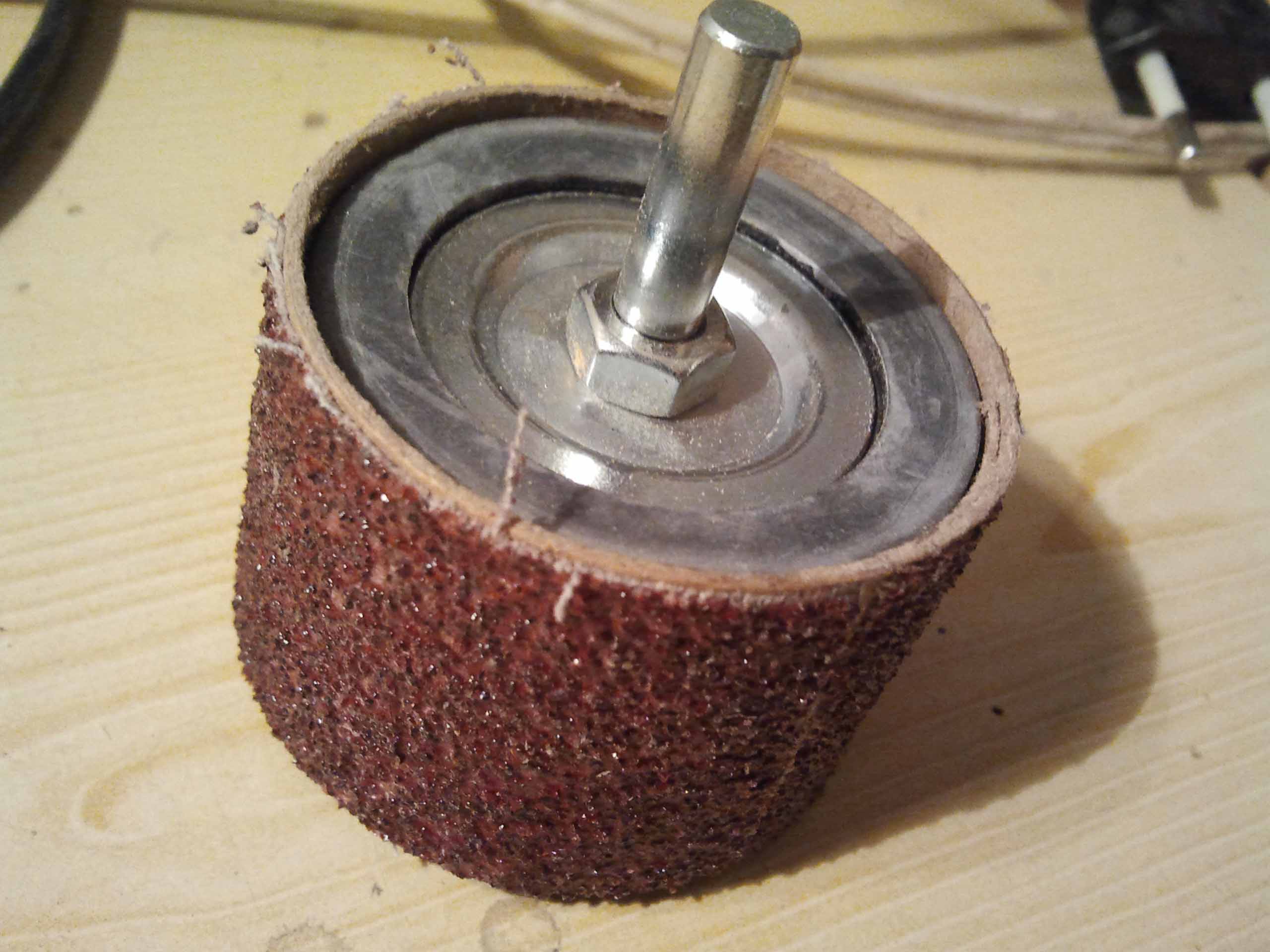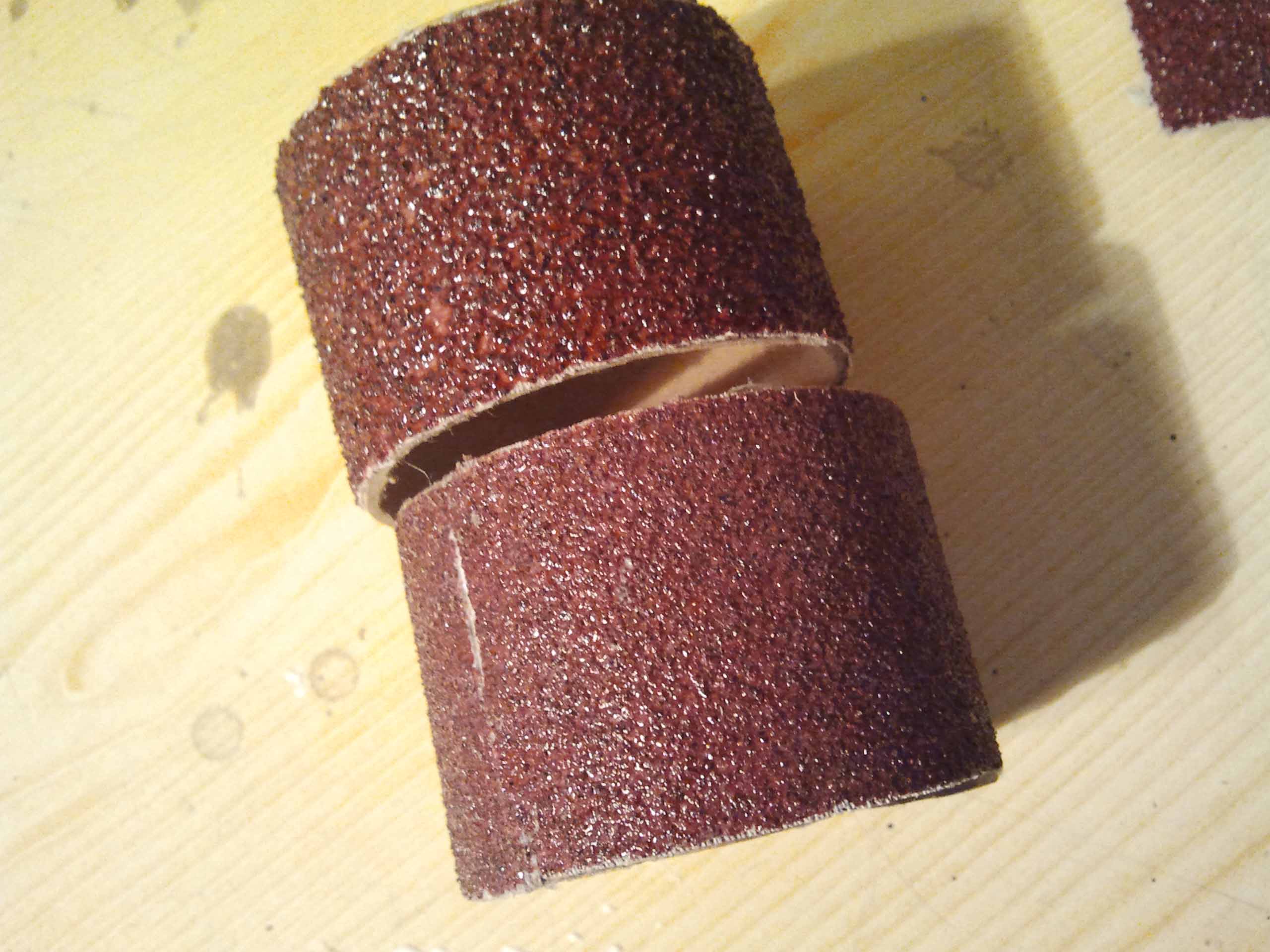 W związku z tym, że czeka mnie dużo szlifowania,postanowiłem wykonać własnoręcznie cylindry do szlifowania.Jako baza posłużyło opakowanie, w którym kiedyś otrzymałem jakąś przesyłkę.Prawie idealnie pasowało do średnicy gumowego wałka szlifierskiego.Papier naklejałem wikolem.Reszta na zdjęciach.Cena takiego to niewielki procent ceny firmowego,a działa identycznie.