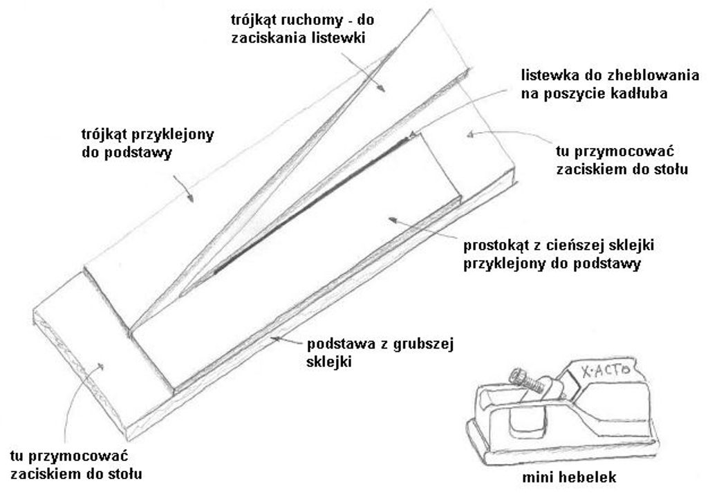 Zaciśnięta trójkątem listewka jest nie do ruszenia. Można ją heblować,
