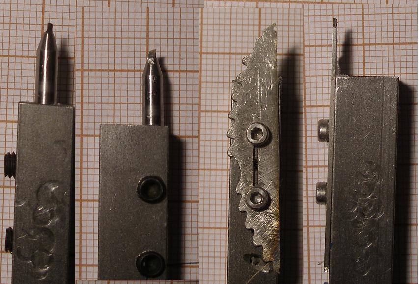 Oba nożyki nadają się do obróbki plastiku i mosiądzu. Oczywiście przecinaczek nie przerżnie