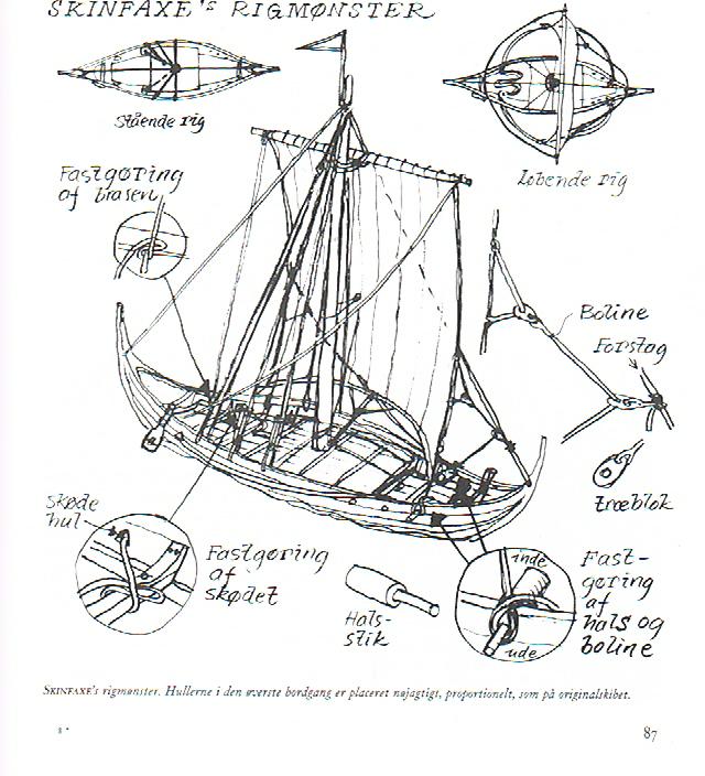 Rysunek z dość szczegółowej rekonstrukcji łodzi Skuldelew1 pokazujący połaczenie rei z