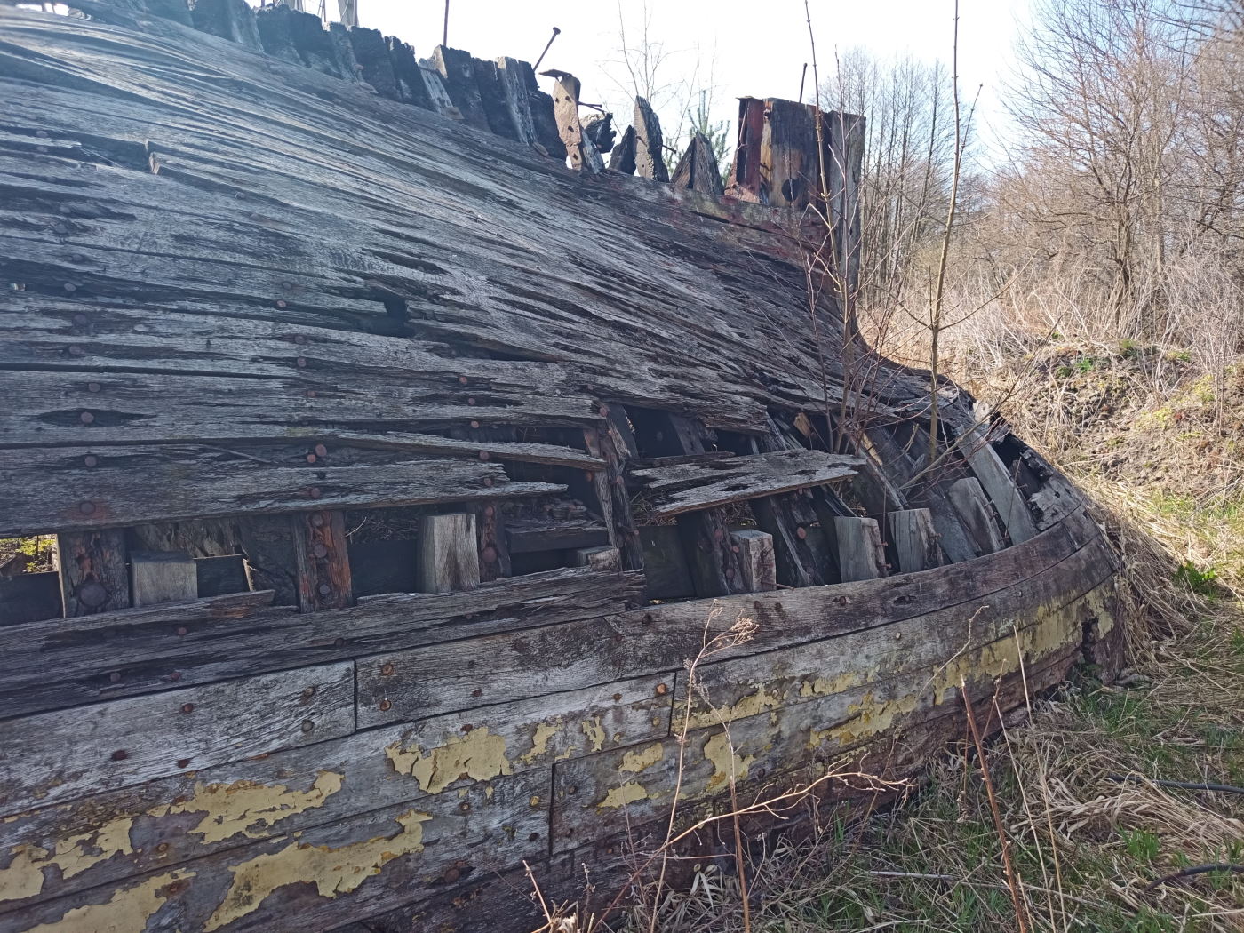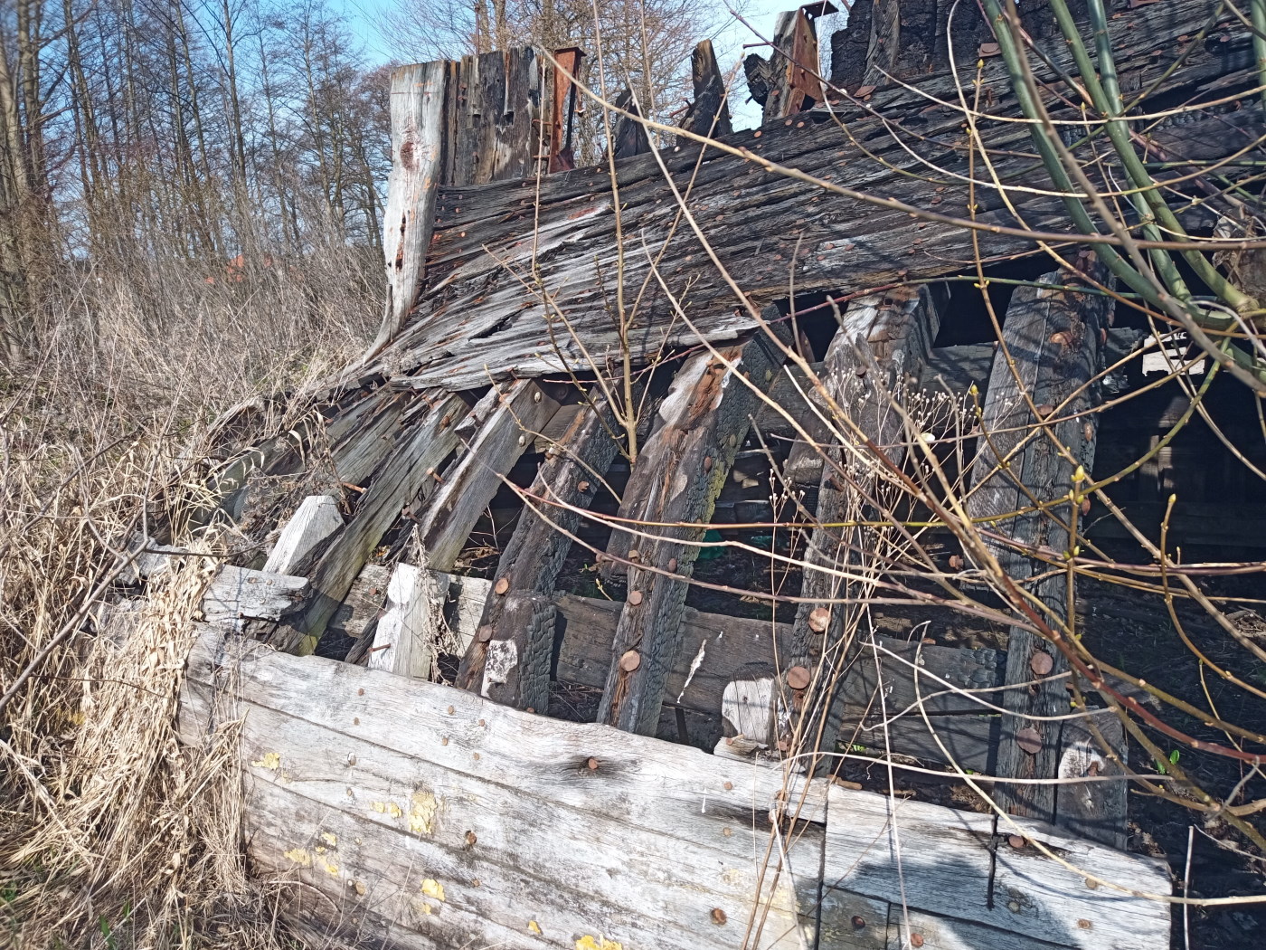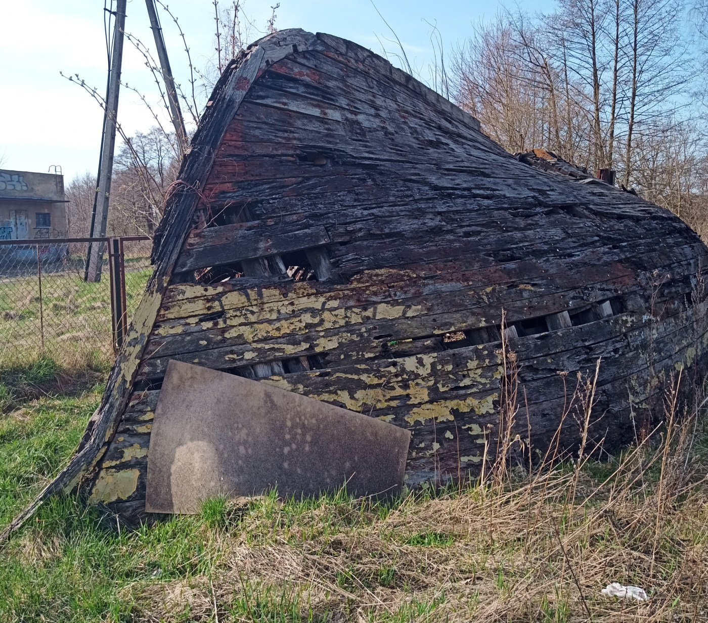 Przy okazji pobliskiej roboty, natknąłem się w Ustce na truchło jednostki. Niby współczesna, ale konstrukcja drewniana. Budowniczowie chyba czerpali z Mondfelda. Dzisiaj to już tylko siedlisko śmieci i menelstwa, a przyroda pochłania resztki.